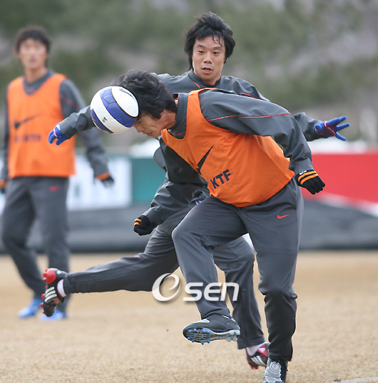 투르크메니스탄과 월드컵 아시아 3차예선 1차전을 사흘 앞둔 허정무호 1기 대표팀의 본격적인 담금질이 시작됐다. 그동안 체력훈련에 집중했던 대표팀은 3일 파주 NFC에서 강도 높은 미니게임으로 전술 훈련을 소화했다. 이날 허정무 감독이 중점을 둔 것은 측면과 미드필드의 강화. 10명씩 팀을 나눈 대표팀은 조끼를 입은 팀과 입지 않은 팀으로 나누어 수비 점검에 나섰다. 전후반 25분씩 치러진 미니게임서 포백으로 나선 두 팀 중 조끼팀은 이종민-곽태휘-강민수-박원재, 상대팀은 김치우-황재원-곽희주-조원희를 포진시켜 투르크메니스탄전에서는 스리백이 아닌 포백을 염두에 두는 듯했다. 허정무 감독은 전후반 미드필드에 변화를 주며 그 추이를 지켜봤다. 전반에는 김두현이 조끼팀의 공격을 이끌었고, 후반에는 이관우에게 임무를 부여했다. 이관우는 단짝 김남일에게 날카로운 스루패스를 연결하며 골에 기여했고, 김두현은 날카로운 PK를 성공시켰다. 또 허 감독은 황지수-김남일과 조용형-조성환의 맞대결을 유도해 서로 다른 색깔의 수비형 미드필드 라인을 시험했다. 조용형-조성형이 거친 태클로 상대를 압도한 반면 황지수-김남일은 수비에서 공격으로 전환하는 과정에서 깔끔한 모습을 선보였다. 한편 이날 스페인 전지훈련에서 돌아온 오범석은 훈련 도중 대표팀에 합류해 가볍게 몸을 풀며 대표팀의 훈련을 지켜봤다. stylelomo@osen.co.kr