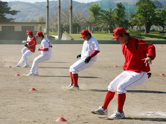 조용한 내야, 살벌한 외야. 일본 규수 미야자키에서 전훈에 여념이 없는 KIA의 수비진 설계도를 보면 내야진과 외야진의 온도차가 상당하다. 내야진은 사실상 경쟁자 없이 일찌감치 주인이 정해졌다. 그러나 외야는 주인 없는 무주공산이나 다름없다. 주전 확보를 향한 치열한 경쟁을 예고하고 있다. 내야진은 1루수 장성호, 2루수 김종국, 유격수 발데스, 3루수 이현곤으로 정해질 것으로 보이며 장성호와 이현곤이 정상 컨디션이 아니지만 개막전 출전에는 큰 문제가 없다. 내야 백업요원으로는 안재만과 삼성에서 이적한 유용목 등이 뒤를 받친다. 무릎부상으로 재활훈련 중인 홍세완은 시즌 중반께 복귀한다. 최희섭은 지명타자로 기용될 것으로 보인다. 그러나 외야진은 춘추전국시대나 다름없다. 이종범 심재학 강동우 최경환 이용규 김원섭이 경합을 벌이고 있다. 지난해는 주전 외야수가 없어 고민이었다. 하지만 조범현 감독의 부임과 함께 스토브리그에서 강동우(트레이드)와 최경환을 영입, 경쟁 구도에 불을 지폈다. 여기에 내야수에서 외야 전업을 시도하고 있는 김주형도 가세했고 신인 나지완도 선배들에게 도전장을 내밀었다. 이 가운데 주전 3명을 추리기가 어렵다. 모두 주전이 될 수도 있고 후보로 밀릴 수도 있다. 그래도 주전 가능성이 높은 선수를 추리자면 발빠르고 수비력이 넓은 이용규와 강동우 정도로 예상된다. 올해 마지막 인생을 걸고 재기를 노리는 이종범이나 은퇴 위기에서 빠져나온 심재학도 한 자리를 노리고 있다. 대졸 루키 나지완도 주목받고 있다. 나지완은 지난해 대학 무대 최고의 타자로 평가받고 있으며 지난 11월 대만 월드컵 대회에서도 대표팀 4번타자로 활약했다. 조범현 감독이 상당한 기대를 걸고 있다. 김주형은 조범현 감독이 일발장타력을 키우기 위해 외야수 전업을 고려하고 있다. 조범현 감독은 미야자키 스프링캠프에서 이들을 경쟁시켜 주전을 추려낼 생각이다. KIA는 체력강화 위주의 괌 전지훈련을 지난 1월29일 마치고 지금은 미야자키 휴가시에서 2차 캠프에 열을 올리고 있다. 오는 25일 가고시마로 이동 타 구단과 실전리그를 갖게 된다. 사실상 본격적인 외야 경쟁체제에 돌입하게 되는 것이다. 앞으로 이들은 자체 청백전, 가고시마리그, 시범경기에 이르기까지 부단히 실전 경쟁을 갖는다. 조 감독은 이들을 꾸준히 실전에 투입, 기량을 점검하고 옥석을 가릴 것으로 보인다. 물론 데이터와 상황에 따른 플래툰 시스템으로 외야진을 운영할 가능성도 있다. 상대투수에 따라 외야진의 조각이 바뀔 수 있다는 말이다. 가능성은 낮지만 지명타자로 내정된 최희섭이 1루를 맡을 경우도 생길 수 있다. KIA 외야진의 총성없는 주전 경쟁이 이미 시작됐다. sunny@osen.co.kr KIA 타이거즈 제공.