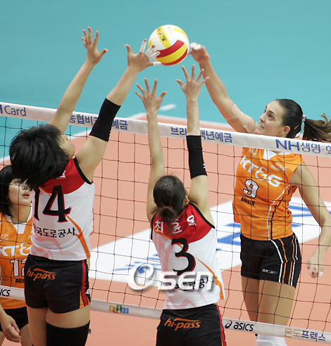 '돌아온 해결사' 페르난다의 활약으로 KT&G가 도로공사를 꺾고 2연패에서 탈출했다. 5일 서울 올림픽 제2체육관에서 펼쳐진 NH농협 2007-2008 V리그 여자부 5라운드 경기서 2위 KT&G는 4위 도로공사를 세트스코어 3-1(25-20 25-23 22-25 27-25)로 이겼다. 이로써 KT&G는 14승 5패가 됐고 도로공사는 4연패의 수렁에 빠지며 5승 14패가 됐다. KT&G는 백어택으로 팀을 살려낸 페르난다(30득점)의 활약에 힘입어 도로공사를 제압했다. 특히 1세트 막판 페르난다가 2점 백어택 득점을 올리면서 도로공사의 추격을 뿌리치고 세트를 따내면서 기선을 잡았다. 센터 김세영도 13득점을 기록하면서 팀 승리를 도왔다. 첫 세트부터 페르난다의 백어택은 눈에 띄었다. 세트 초반 3-3 상황서 먼저 KT&G가 리드를 잡을 수 있었던 것도 페르난다의 2점 백어택 득점. 이후 중반 박경낭의 연속 2득점에 힘입어 12-7로 앞서나간 KT&G는 5~6점이라는 점수차를 유지하며 세트 후반까지 도로공사를 앞서갔다. 그러나 도로공사도 임효숙의 2점 백어택 득점으로 18-22까지 KT&G를 추격하더니 한송이의 2점 백어택 득점까지 가세, 순식간에 20-22까지 따라잡았다. 하지만 23-20으로 불안한 리드를 지키고 있던 KT&G에게는 페르난다가 있었다. 페르난다는 세터 김사니의 토스를 받아 2점 백어택을 도로공사 코트에 꽂아넣으며 KT&G가 1세트를 마무리짓는 데 결정적인 역할을 했다. 2세트 들어서도 KT&G 페르난다의 백어택은 도로공사의 추격에 찬물을 끼얹었다. 3~4점의 리드를 꾸준히 유지한 KT&G는 1세트와 비슷한 양상으로 도로공사의 끈질긴 추격에 동점을 허용했다. 18-14로 앞서간 상황서 KT&G 박경낭의 오픈이 임효숙에게 가로막히면서 18-15가 됐고 한송이의 2점 백어택이 KT&G 코트에 떨어지면서 KT&G는 도로공사에 18-17까지 추격을 허용했다. 결국 23-23 동점인 상황서 한송이의 시간차 공격을 잘 막아낸 KT&G는 이 기회를 페르난다의 2점 백어택 득점으로 연결, 2세트를 끝냈다. 1,2세트가 2점 백어택으로 KT&G의 승리로 끝났다면 3세트는 도로공사 차례였다. 2세트와는 정반대로 도로공사가 먼저 앞서나갔지만 KT&G는 페르난다의 2점 백어택 득점으로 22-23까지 쫓아왔다. 하지만 도로공사는 이전 세트서 KT&G에 당했던 일을 복수하며 임효숙이 2점 백어택을 성공시키며 25-22로 3세트를 챙겨갔다 . 그러나 4세트서 도로공사는 3세트를 챙긴 상승세를 승리로 이어가지는 못했다. 도로공사는 한송이의 2점 백어택 득점으로 KT&G를 18-20까지 쫓아왔고 한송이의 퀵오픈 성공으로 23-24까지 추격했지만 페르난다의 2점 백어택이 마지막에도 위력을 뿜으면서 27-25로 경기는 KT&G 승리로 긑났다. 7rhdwn@osen.co.kr