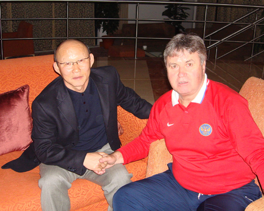 터키 안탈리아에서 전지훈련 중인 전남 드래곤즈의 박항서 감독이 거스 히딩크 러시아 대표팀 감독과 의미있는 만남을 가졌다. 박 감독은 지난 4일(현지시간) 러시아 대표팀의 안탈리아 전훈 숙소인 코넬리아 호텔로 찾아가 히딩크 감독과 약 한 시간 가량 짧고도 긴 시간을 함께 했다. 이번 만남은 지난 2005년 6월 피스컵 이후 2년 반 만의 일. 여기서 히딩크 감독은 박 감독에게 클럽 지도자가 갖춰야 할 바람직한 덕목과 팀 운영, 선수 관리 노하우에 대해 많은 충고를 했다. 또한 박 감독은 2002 아시안게임 대표팀, 경남 FC 감독을 지내는 동안 고민해온 내용과 선수 관리 노하우 등을 질문했고 원하는 답변을 받았다. 2002년 이후 개인적인 인연을 유지해온 박 감독은 전남 사령탑에 취임한 뒤 히딩크 감독에게 자신의 근황을 알렸고, 히딩크 감독 또한 터키 전지훈련 계획을 알리며 자연스레 이번 만남이 이뤄지게 됐다. 히딩크 감독은 김남일을 발탁한 계기가 된 광양 전용구장 방문을 생생히 기억하고 있었고, 앞으로 한국을 방문하게 될 경우 또다시 전남 광양을 찾겠노라는 약속한 것으로 전해진다. 한편 지난달 23일부터 안탈리아에 머물고 있는 전남은 현지에서 유럽 동구권 팀과 연습경기를 통해 팀 전술의 완성도를 높이고 있다. yoshike3@osen.co.kr 전남 드래곤즈 제공.