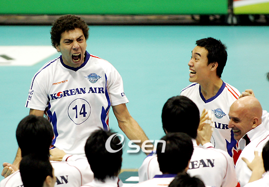 대한항공이 상무를 힘겹게 꺾고 4연승을 이끌었다. 12일 인천도원체육관서 열린 NH농협 2007-2008 V리그 남자부 경기에서 대한항공은 상무를 세트스코어 3-1(25-13 20-25 27-25 25-23)로 따돌리고 4연승을 달렸다. 대한항공은 27득점을 올린 보비와 12득점을 올린 장광균의 활약으로 힘겹게 상무를 눌렀다. 반면 상무는 2세트를 챙기며 상승세를 타는 듯했으나 3세트를 25-27로 아쉽게 내줬고 4세트도 한때 16-11로 앞서나갔지만 대한항공에 추격을 허용하며 패하고 말았다. 첫 세트는 대한항공이 일방적으로 상무를 몰아붙이며 쉽게 경기를 시작했다. 외국인 선수 보비는 블로킹, 백어택을 앞세워 상무를 괴롭혔고 상무의 공격은 보비에게 가로막히며 무기력한 1세트를 치렀다. 이영택과 진상헌의 속공과 장광균의 이동공격까지 마음껏 스파이크를 상무 코트에 꽂아 넣은 대한항공은 1세트를 25-13으로 끝냈다. 그러나 상무는 2세트 들어 살아나기 시작했다. 임동규와 권광민을 앞세워 대한항공을 따라잡은 상무는 상대 실책을 묶어 역전에 성공했다. 이어 추격해오던 대한항공을 상대로 차영민과 김철홍이 블로킹으로 3득점을 합작한 상무는 보비의 백어택이 아웃되면서 2세트를 25-20으로 챙겼다. 무서운 기세로 대한항공을 몰아붙인 상무는 3세트에도 분위기를 이어갔다. 세트 초반 상무는 보비에게 연속으로 스파이크가 가로막혔지만 이후 권광민의 백어택 등으로 대한항공을 추격했다. 김상기와 임동규의 서브 득점으로 21-21 동점을 만든 상무는 24-24 듀스를 만드는 데 성공했다. 하지만 상무는 결정적인 순간 공격범실 2개가 나오면서 3세트를 아쉽게 대한항공에 내줬다. 4세트도 상무는 먼저 앞서나갔다. 세트 중반까지 16-11로 앞서간 상무는 그러나 이후 대한항공에 추격을 허용하며 20-20 동점까지 허용했다. 이후 승부는 블로킹에서 갈렸다. 상무가 먼저 김달호와 김도형의 블로킹 득점으로 앞서나갔지만 결정적인 순간 세터 김영래의 연속 블로킹 득점이 나오면서 대한항공이 가까스로 승리를 거뒀다. 7rhdwn@osen.co.kr
