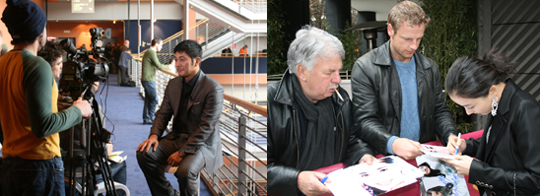 홍상수 감독은 올해 베를린 국제영화제에서 냉 온탕을 오갔다. 그의 저예산 최신작 '밤과 낮'이 20여편의 본선 경쟁작에 포함된 뒤 뜨거운 호평을 받았지만 수상에는 실패하면서다. 지난 13일(현지시간) 베를린 인터콘티넨탈 호텔에서는 홍 감독과 '밤과 낮'의 남녀 주연 김영호 박은혜의 개별 인터뷰가 이어졌다. 세계 각국에서 몰려온 취재진이 이번 영화제에서 독특한 이야기 구조와 소재로 주목을 끌었던 '밤과 낮'의 주인공들을 찾은 것이다. 이날 하루 독일 국영방송을 포함해 프랑스 오스트리아 스페인 이탈리아 등 유럽 전약 17개 언론매체가 세 사람을 집중 취재했다. 홍 감독 자신은 단독 인터뷰로 5개 매체를 상대하면서 별도 통역없이 유창한 영어 실력으로 기자들의 질문 모두에 친절하게 답변을 했다. 현지에 동행한 '밤과 낮' 제작진은 "홍 감독을 만난 외국 기자들이 입을 모아 '역시 홍상수는 다르다'며 친찬을 아끼지 않았다"는 소식을 전해왔다. 또 체코의 한 영화 관계자는 직접 인터뷰 장소를 방문, "홍 감독의 영화가 카를로 비바리 국제영화제를 통해 소개된 이후 체코에서 한국영화에 큰 관심을 갖기 시작했다"며 악수를 나눴다. 국제무대 첫 도전인 김영호도 차분하게 현지 기자회견 일정을 소화했다. "거짓말은 배우가 꾸는 꿈"이라며 인터뷰를 시작한 그는 '화가 같지 않은 건장한 외모를 지녔는데도 홍 감독이 캐스팅한 이유는 뭔가'라는 질문에도 당황하지 않고 "사실 감독님이 나를 만나고 난 뒤, 내가 몸집이 큰 걸 알고는 나 몰래 고민을 많이 했다고 하더라"며 재치있게 받아넘겨 회견장을 웃음바다로 만들었다. '동양의 바비 인형' 애칭을 얻은 박은혜는 드라마 촬영으로 일정이 촉박해 오전에만 인터뷰를 한 데 대해 "더 많은 매체와 이야기를 나누지 못하고 귀국하는 사실이 아쉽다"면서도 빠듯한 시간동안 최선을 다해 영화를 홍보했다. 홍 감독과 김영호는 15일 오후 귀국할 예정이다. mcgwie@osen.co.kr 영화사 봄 제공