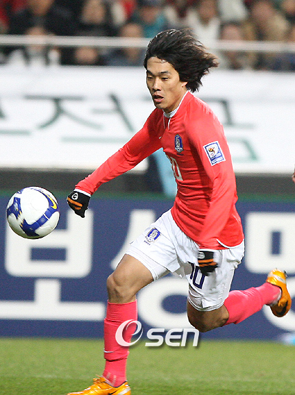 '좌 기훈-중 주영-우 근호'. 17일 오후 중국 충칭 올림픽스포츠센터에서 킥오프될 중국과의 동아시아선수권 대회 개막전에 나설 한국대표팀의 베스트 일레븐이 발표됐다. 허정무 감독이 이끄는 국가 대표팀은 예상대로 공격진에 박주영을 가운데에 세우고 염기훈과 이근호를 좌우 측면 윙포워드로 기용다. 그리고 관심을 끌었던 수비라인은 예상대로 조용형, 곽희주, 곽태휘로 3백을 배치했다. 미드필드 라인은 유일한 해외파 김남일과 조원희가 포진했고, 좌우 측면에는 박원재, 이종민이 자리를 잡았다. 또한 정성룡이 골문을 지키게 됐다. ■ 중국전 선발명단 ▲GK=정성룡 ▲DF=곽희주 조용형 곽태휘 ▲MF=박원재 김남일 조원희 이종민 ▲FW=염기훈 박주영 이근호 10bird@osen.co.kr 박주영.