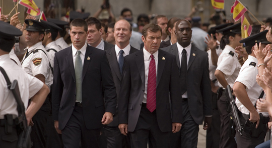 외화 시사회 현장이 살벌하다. 18일 오후 2시 서울 용산 CGV에서 영화 밴티지 포인트(피트 트래비스 감독, 소니픽쳐스릴리징브에나비스타영화 수입배급)의 언론시사회가 열렸다. 티켓을 내밀고 영화관으로 들어서려는데 요원들이 막아 섰다. 티켓 확인 후에 바로 관람을 할 수 있는 게 아니라 한번의 확인 절차가 또 있었던 것. 바로 동영상 카메라를 소지했는지 여부. 총 8명의 요원이 4명으로 각각 나눠 각 관 앞에서 소지품 검사를 하고 있었다. “동영상 카메라를 가지고 계십니까?” 만약에 그렇다면 영화관으로 가지고 들어갈 수 없고 영화가 끝날 때까지 잠시 밖에 맡겨둬야 했다. 동영상 카메라 소지 여부 외에 한가지가 더 있었다. 바로 휴대폰의 동영상 촬영 기능 때문. 요원들은 입장하는 관람객들의 휴대폰 렌즈에 일일이 스티커를 붙였다. ‘보안’이라는 마크의 스티커였다. 검문을 받은 후에 영화관 안에 들어가서 관람을 하려고 하니 스크린 왼편에 블랙정장을 입은 한 요원이 서있다. 그 요원은 어두운 영화관 한 켠에서 2시간 내내 서서 관람객들을 감시했다. 사전 보완검색을 했지만 누군가 어두운 영화관 안에서 몰래 영화를 찍을 수도 있기 때문. 당일 오후 4시 시사회가 끝나고 기자와 만난 영화인의 서경은 팀장은 “프리미어 시사회를 하면 어느 경로를 통해서든 영화 파일이 인터넷에 돌게 된다”며 “이런 보완검색으로 다 막을 수는 없지만 최소한의 장치로 하게 됐다. 이것마저 하지 않으면 파일 확산을 걷잡을 수 없고 불법다운로드가 더 빈번해진다”고 밝혔다. (주)소니픽쳐스릴리징브에나비스타영화의 허인실 과장은 “‘밴티지 포인트’는 22일 미국에서 먼저 개봉한다”며 “미국에서 먼저 개봉할 때는 기자/배급 시사회뿐만 아니라 모든 시사회에서 이런 검사를 실시한다. 우리나라뿐만 아니라 전세계적으로 파일유출을 막기 위해 시사회에서 보완검색을 한다. 그럼에도 파일이 돌고 불법다운로드가 빈번하지만 손을 놓고 있을 수 만은 없다”고 어려움을 토로했다. crystal@osen.co.kr 영화 ‘밴티지 포인트’의 한 장면. / (주)소니픽쳐스릴리징브에나비스타영화 제공.