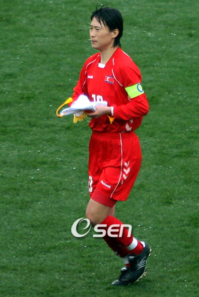 '리 자매'를 경계하라. 국제축구연맹(FIFA) 여자랭킹 6위인 아시아 최강 북한이 지난 18일 중국 융촨에서 열린 2008 동아시아선수권대회서 첫 경기서 일본에 2-3으로 역전패했지만 주장 리금숙(30, 171cm, 4.25)과 리은경(28, 166cm, 월미도)의 실력은 단연 돋보였다. 북한은 전반 3분 선제골을 허용한 뒤 전반 38분 리금숙, 후반 10분 리은경이 연달아 득점포를 폭발시키며 단숨에 2-1로 역전시켰으나 후반 37분 동점골을 내준 뒤 종료 직전 한 골을 더 허용하며 아쉽게 무릎을 꿇었다. 그러나 북한은 빼어난 공격력을 보여주었다. 특히 북한의 필드 플레이어 중 최장신인 최전방 공격수 리금숙은 일본 수비진을 유린하며 최고의 기량을 과시했다. 상대 수비 뒷공간을 파고드는 플레이와 전방의 프리킥과 코너킥을 모두 처리하는 등 명실상부한 에이스였다. 활발한 움직임을 보여준 리금숙은 1-0으로 뒤지던 전반 38분 오른쪽 측면에서 올라온 크로스를 골키퍼를 제치고 헤딩슛으로 동점골을 뽑아냈다. 그리고 리금숙과 함께 경계해야 할 선수로는 미드필더 리은경이 손꼽힌다. 미드필더인 리은경은 공격형 미드필더로 최전방의 리금숙에게 예리한 전진 패스를 내주거나 윙백 오종란 김경화에게 오픈 찬스를 만들어주는 패싱으로 일본의 포백라인을 무너뜨리는 데 큰 공을 세웠다. 또 리은경은 날카로운 패싱력 외에도 강력한 중거리 슛팅 능력으로 후반 10분 역전골을 뽑아내는 활약을 펼쳤다. 이번 대회 여자부 첫날 남과북의 자매들은 각각 2-3 패배를 당하며 불안한 출발을 보였다. 부진한 출발을 보인 한국과 북한 여자축구의 맞대결은 순위가 판가름날 대회 최종일인 오는 24일 벌어진다. 10bird@osen.co.kr 리금숙.