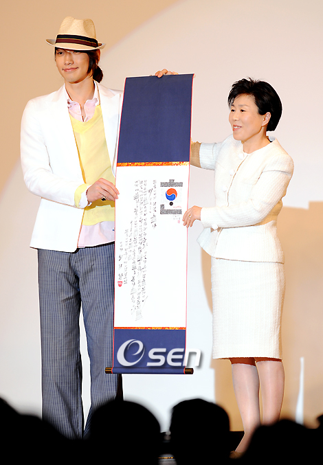 한국이미지 알리기 'CICI KOREA 2008'이 19일 서울 그랜드 인터컨티넨탈 호텔에서 열렸다. 한국의 대중문화를 세계에 알린 '올해의 한국 이미지'에 수여하는 '디딤돌상'에는 비(본명 정지훈)가, 스무살 미만 미래의 한국 이미지에 수여하는 '새싹상'에는 마린보이 박태환과 피겨요정 김연아가 각각 수상자로 결정됐다. 비가 '디딤돌상'을 수상하고 있다. /황세준 기자 storkjoon@osen.co.kr