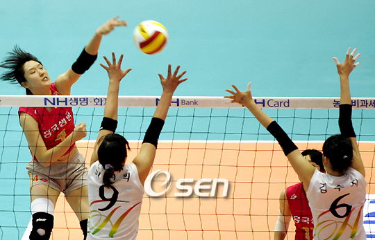 흥국생명이 최하위 현대건설에 진땀을 흘린 끝에 간신히 재역전승을 거두고 정규리그 우승 매직넘버를 1로 줄였다. 흥국생명은 19일 오후 수원 실내체육관에서 열린 NH 농협 2007-2008 V리그 여자부 6라운드 경기서 현대건설과 접전 끝에 세트 스코어 3-2(25-20 21-25 30-32 25-17 15-13)으로 이겨 챔피언결정전 직행에 1승만을 남겨두게 됐다. 마지막 5세트까지 양 팀은 포인트를 주고받으며 접전을 이어갔고 9-9에서 티파니와 양효진의 오픈 공격이 성공되며 현대건설에게 유리하게 흘러가는 듯했다. 그러나 흥국생명은 황연주(31점)와 김연경(30점)의 활약에 힘입어 13-13으로 동점을 만들었다. 이어 흥국생명은 상대 김수지의 네트 터치 범실과 티파니의 오픈 공격 실패로 어렵사리 승리를 거뒀다. 첫 세트를 내준 현대건설은 2세트와 3세트를 티파니(33점)의 활약과 강력한 서브로 따내 승리를 눈앞에 뒀지만 4세트부터 체력이 떨어진 모습을 보이며 천적 흥국생명을 잡을 수 있는 절호의 기회를 놓치고 말았다. 현대건설은 지난 2006년 1월 21일 홈에서 흥국생명을 3-2로 꺾은 이후 당한 14연패를 25개월 만에 설욕하는 듯했으나 또다시 주저앉아 15연패를 당하고 말았다. 첫 세트 초반 분위기는 흥국생명이 주도했다. 오픈 공격과 백어택을 내리 성공시킨 마리의 활약에 힘입은 흥국생명은 7~8점차 리드를 잡았다. 그러나 현대건설은 한유미의 오픈 공격에 힘입어 18-21로 따라 잡으며 분위기를 바꿨다. 신인들을 중심으로 기용한 흥국생명의 여유가 원인이었다. 하지만 흥국생명이 김연경, 황연주 등 주전멤버를 투입하며 흐름은 다시 바뀌었고, 황연주의 오픈 공격이 작렬하며 손쉽게 현대건설의 추격을 뿌리쳤다. 두 번째 세트는 양 팀이 포인트를 주고받으며 흥미로운 양상으로 경기가 진행됐다. 흥국생명의 황연주가 백어택 2개를 성공시키면, 현대건설은 한수지가 2번 연속으로 서브 에이스를 성공시키며 따라갔다. 그러나 14-15에서 현대건설은 티파니가 백어택에 성공한 것을 시작으로 앞서가기 시작했다. 현대건설은 상대 공격수 황연주의 1점 백어택에 티파니의 실책이 겹치 21-21으로 잠시 동점을 내줬으나 부진했던 한유미의 오픈 공격이 터지며 2세트를 잡아냈다. 3세트에서도 양 팀은 쉽게 주도권을 내주지 않으며 한 점차의 승부를 이어갔다. 현대건설이 티파니를 중심으로 앞서가면 흥국생명은 김연경을 중심으로 쫒아갔다. 24-23으로 흥국생명이 이길 것 같았던 승부는 전민정과 태솔이 드리블 실수를 하며 바뀌고 말았다. 7번의 듀스를 버틴 현대건설은 양효진의 시간차 공격과 한수지의 오픈 공격이 성공하며 3세트를 따냈다. 흥국생명의 김연경은 3세트서만 15점을 득점하며 맹활약했지만, 중요한 순간에 범실을 흥국생명을 웃고 울게 했다. 4세트는 완연한 흥국생명의 분위기였다. 서브 리시브가 흔들린 현대 건설은 4세트서 살아난 마리를 막지 못하며 어려운 경기를 풀어갔다. 흥국생명은 14-10에서 황연주의 서브 에이스가 성공하며 4-5차 리드를 유지했다. 이어 흥국생명은 4세트에서만 8득점을 올린 황연주의 활약에 힘입어 4세트를 이겨 세트 스코어 2-2 동점을 만드는 데 성공했다. stylelomo@osen.co.kr