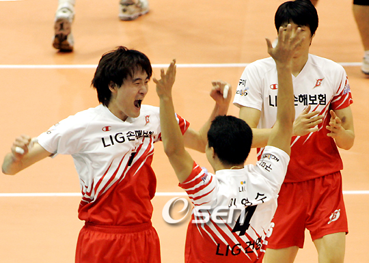 4위 구미 LIG손해보험 그레이터스가 챔피언결정전 직행을 노리는 2위 인천 대한항공 점보스에게 고춧가루를 뿌리며 최근 4연패에서 탈출, 자존심을 회복했다. 갈 길 바쁜 대한항공은 6연승에 실패하며 19승 5패로 선두 삼성화재(20승 3패)와 간격이 벌어졌다. 20일 오후 인천 도원 시립체육관에서 열린 NH농협 2007-2008 V리그 남자부 5라운드 경기서 LIG손보는 종전까지 5연승을 달리던 대한항공을 세트 스코어 3-0(25-22 25-17 26-24)으로 완파하고, 올 시즌 상대 전적 2승 3패를 기록과 함께 11승 13패가 됐다. 전날까지 개인 통산 1990점을 기록하고 있던 LIG손보의 거포 이경수는 대한항공을 상대로 13점(블로킹 2개)을 올리면서 사상 최초로 2000득점을 돌파했다. 첫 세트부터 치열한 접전이 펼쳐졌다. 보비와 장광균을 내세운 대한항공과 팔라스카 이경수 콤비를 포진시킨 LIG손보는 대등한 랠리를 유지했지만 8-4로 LIG손보가 리드를 잡으면서 균형이 조금씩 흐트러지기 시작했다. 활발한 공격과 안정된 수비로 범실을 최소화한 LIG손보는 팔라스카와 이경수가 맹타를 퍼부으며 기세를 올려갔고, 순식간에 스코어를 13-5까지 벌리며 여유를 찾을 수 있었다. 대한항공은 막판 3점차까지 좁혔으나 더 이상 LIG손보는 추격을 허용하지 않았다. 2세트서도 LIG손보의 공세는 계속됐다. 팔라스카의 퀵오픈을 시작으로 공격의 포문을 연 LIG손보는 하현용의 시간차 공격, 방신봉과 이경수의 속공 플레이로 포인트를 차곡히 쌓아 여유있게 4~5점차 리드를 유지해 세트 스코어를 2-0으로 벌렸다. 대한항공은 김학민의 시간차 공격, 장광균의 속공, 보비의 날카로운 백어택으로 세트 중반 15-18까지 추격했으나 LIG손보의 위력을 더한 화력과 착실한 수비에 더 이상 점수차를 좁히지 못해 아쉬움을 삼켰다. 마지막 3세트서도 LIG손보의 집중력은 대단했다. 보비와 강동진의 공격이 내리 성공되며 기세를 올린 대한항공이었지만 팔라스카가 쉴 새 없이 불꽃 맹타를 퍼붓는 LIG손보의 화력도 막강했다. 내리 뒤지던 LIG손보는 엄창섭의 블로킹으로 10-10을 만든 뒤 전세를 바꿨다. LIG손보는 엄창섭의 블로킹으로 역전에 성공한 뒤 팔라스카의 2차례 백어택으로 리드를 유지했다. 대한항공은 계속 동점 상황을 엮어가며 반전을 꾀했으나 좀처럼 역전에 성공하지 못했고, LIG손보는 듀스 상황까지 몰리며 위기를 맞이했지만 25-24에서 팔라스카가 깨끗히 승부를 마무리했다. 경기가 끝난 뒤 인터뷰서 박기원 LIG손보 감독은 "이동엽의 안정된 토스웍이 살아나며 어려우리라 예견된 승부를 쉽게 풀어갈 수 있었다"면서 "이경수와 팔라스카의 공격은 물론 수비 조직력까지 만족스러웠다"는 소감을 밝혔다. 한편 앞서 열린 여자부 6라운드 경기선 한송이가 30득점한 한국 도로공사가 GS칼텍스를 세트 스코어 3-1(25-21 17-25 25-13 25-13)로 물리치고, 7승(16패)째를 올리며 실낱같은 플레이오프 진출 희망을 되살릴 수 있었다. yoshike3@osen.co.kr