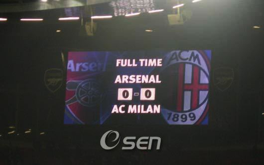 [OSEN=에미리츠스타디움(런던), 이건 특파원] 축구에서 경험이 차지하는 비중이 얼마나 될까? 아마도 이 질문에 대한 답은 저마다 다를 것이다. 그렇지만 경험이 상당히 큰 비중을 차지한다는 것을 공통점일 것이다. 그리고 상대적으로 경험의 비중이 낮다고 대답한 사람들이 있다면 이 경기를 보고 생각을 고쳐먹었을 것이다. 바로 21일(한국시간) 새벽 런던 에미리츠 스타디움에서 열린 아스날과 AC 밀란의 UEFA 챔피언스리그 16강 1차전이다. 결과부터 말하자면 0-0 무승부로 끝났다. 하지만 기록상으로 본다면 아스날이 승리하지 못한 것이 이상할 정도다. 유효슈팅 7대2, 총 슈팅수 16대7. 점유율 54%대 46%, 모든 면에서 아스날이 2~3골차 이상으로 이겼어야 하는 경기였다. 결국 AC 밀란의 경험이 원정경기에서 무실점 무승부를 거둔 원동력이었던 것이다. AC 밀란의 경험은 대단했다. 산전수전 다 겪은 이들은 노련하게 경기를 운영했다. 이들의 목표는 간단명료했다. 원정 경기에서 무승부를 이끌어내겠다는 것. 말디니(40), 네스타(32), 갈라제(30), 오도(32)로 이어지는 평균나이 33.7세의 포백 라인은 철옹성이었다. 이들은 패기가 앞서는 아스날의 공격진을 효과적으로 무력화시켰다. 아스날은 수비 뒷공간을 노리는 로빙패스를 시도하며 노장 수비수들과 젊은 아데바요르(24)를 경쟁시켰지만 그것도 한계를 넘지 못했다. 페널티에어리어까지는 내주었지만 마지막 순간까지 무너지지 않고 전열을 가다듬은 AC 밀란의 수비진은 상대를 위험구역에서 몰아냈다. 허리 라인과 공격진 역시 수비에 중점을 두었다. 이들은 무리한 플레이보다는 안정성에 중점을 두었다. 상대에게 공을 커트당하면 파울로 끊어내고 발빠른 파투나 개인기 좋은 카카를 적극 활용했다. 이들이 상대 수비수를 제쳐내면 좋은 것이고 그렇지 않더라도 크게 아쉬워하지는 않았다. 경험에서 우러나온 AC밀란의 노련한 경기 운영 능력 앞에 아스날은 자신의 공격 속도를 주체하지 못했다. 특히 집중력을 가져야 하는 후반 중반 이후 아스날 선수들은 의미없는 중거리슈팅을 남발했다. 여기에 후반 종료 직전 아데바요르의 헤딩이 크로스바를 맞는 불운까지 겹쳤다. 결국 AC 밀란의 경험과 노련미에 아스날 선수단과 6만 여 홈팬들은 헛심만 썼다고해도 그리 과장은 아닐 것이다. bbadagun@osen.co.kr