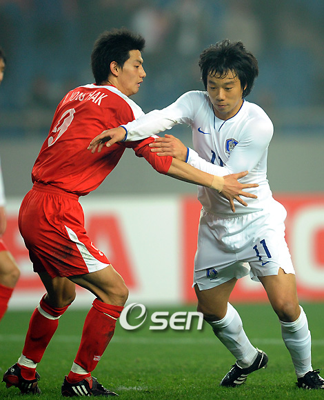 '왼발 스페셜리스트' 염기훈(25, 울산)이 북한 킬러로 뜨나?. 허정무 감독이 이끄는 축구 국가대표팀은 지난 20일 중국 충칭에서 열린 2008 동아시아선수권 대회 북한과 경기서 1-1 무승부를 기록했다. 대회 첫 경기였던 17일 중국전 후 허정무 감독에게 부진하다는 평가를 받았던 염기훈은 이날 경기 전반 20분 자신이 돌파를 통해 만들어낸 프리킥을 직접 꽂아 넣어 득점을 올리는 최고의 활약을 펼쳤다. 비록 무승부로 끝났지만 염기훈의 활발한 움직임을 즐길 수 있었던 경기였다. 염기훈은 이근호와 함께 측면 공격수로 출장해 초반 한국 공격을 이끌었다. 두터운 수비벽을 자랑하던 북한의 수비진을 밖으로 끌어내기 위해 시도했던 중거리 슈팅은 염기훈이 얼마나 성장 했는가를 알 수 있는 내용이었다. 중국전서 박주영의 선제 헤딩슛을 어시스트한 염기훈은 이로써 확실히 자신의 위치를 자리매김 하게 됐다. 특히 내달 26일 열릴 북한과의 2010 남아공 월드컵 3차예선 2차전을 앞두고 염기훈은 북한 킬러로 자리잡았다. 이미 지난 2006년 12월 북한과의 도하 아시안게임 8강전서 한국이 3-0 승리를 거둘 때 1골1도움을 기록해 팀이 완승을 거두는 데 디딤돌 역할을 한 바 있다. 염기훈의 상승세는 대표팀에 많은 도움이 될 전망. 앞으로 월드컵 본선행 티켓을 따내기 위해 험난한 여정을 걸어야 하는 대표팀에서 왼발의 달인 염기훈이 반드시 필요한 존재로 성장해 가고 있다. 10bird@osen.co.kr 지난 20일 경기서 염기훈이 안영학과 몸싸움을 벌이는 모습. . . . . .