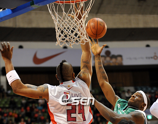 골밑을 장악한 동부가 SK를 꺾고 4연승을 이어갔다. 전창진 감독이 이끄는 원주 동부는 21일 잠실 학생체육관에서 열린 2007-2008 SK 텔레콤 T 프로농구 서울 SK와 원정경기서 골밑을 장악한 레지 오코사(25점 16리바운드)와 김주성(15점 8리바운드 6어시스트)의 활약에 힘입어 89-72로 승리했다. 동부는 33승 12패를 기록하며 4연승의 상승세를 이어갔다. 반면 SK는 6위 도약의 기회를 놓치고 말았다. 이날 동부는 SK에 높이가 얼마나 중요한지 몸소 가르쳤다. SK 김기만과 김태술의 활약도 골밑이 제압당하면 소용없었다. 초반 기세를 잡은 쪽은 6강 플레이오프 진출에 마음이 바쁜 SK였다. SK는 김기만의 물오른 득점력에 힘입어 선두 동부를 압박했다. 김기만의 3점슛이 터진 5분 40초경에는 14-8로 앞서면서 이날 경기가 없는 전자랜드를 제치고 6위로 복귀할 수 있을 듯했다. 그러나 잠시 김기만을 빼고 김태술을 투입한 것이 화근이었다. 침묵하던 오코사가 폭발한 동부는 7분 3초경 동점을 만들더니 오코사의 덩크가 림을 흔든 9분 16초경에는 14-22로 도망가는 데 성공했다. 동부의 기세는 2쿼터에서도 여전했다. SK의 외국인 선수 자시 클라인하드에게 두 번의 덩크를 허용했지만, 오코사와 김주성의 활약 속에 7~8점의 점수차를 유지했다. SK는 외곽슛으로 역전을 노렸지만, 골밑이 받쳐주지 않는 이상 추격은 무리였다. 2쿼터까지 동부가 24개의 리바운드를 잡아내는 동안 SK가 잡은 리바운드는 16개에 불과했다. SK는 김기만의 활약에 힘입어 접전을 이어갔지만 벌어진 점수차는 3쿼터에서도 여전했다. 정락영이 순도 100%의 득점력을 발휘하며 추격을 노렸지만, 동부는 강력한 리바운드와 함께 오코사가 무적의 훅슛으로 SK를 유린했다. 마지막 4쿼터에서도 동부의 일방적인 독주는 멈추지 않았다. 이는 외곽에서 맹활약한 카를로스 딕슨의 공이었다. 4쿼터 2분 3초경 첫 3점슛을 성공시키며 슛 감각을 조율한 딕슨은 4쿼터서만 11점을 내리 올리며 벤치에서 기다렸던 울분을 털어냈다. 하지만 SK의 막판 추격은 매서웠다. 로빈슨의 활약을 바탕으로 추격을 시작한 SK는 4쿼터 7분 54초경 72-80으로 따라잡으며 동부를 긴장케 하기 충분했다. 그러나 동부는 막판 오코사가 살아나며 두 자릿수 점수차의 낙승을 거뒀다. ■ 21일 전적 잠실학생체 서울 SK 76 (19-26 19-20 17-19 19-24) 89 원주 동부 stylelomo@osen.co.kr 2쿼터 동부 오코사가 SK 클라인허드의 마크를 받으며 훅슛을 시도하고 있다. /잠실학생체=황세준 기자 storkjoon@osen.co.kr