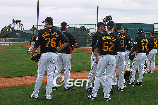 [OSEN=브래든턴, 김형태 특파원] '해적선' 승선을 앞두고 있는 김병현(29)이 구단 신체검사를 통과했다. 지난 22일(이하 한국시간) 스프링캠프인 '파이어러트 시티'에서 김병현의 피지컬 테스트를 실시한 피츠버그는 24일 '이상무'라는 결과가 나왔다고 밝혔다. 그러나 김병현은 예정과 달리 이날 팀 훈련에 참가하지 않았다. 김병현의 캠프 첫 훈련을 취재하기 위해 AP, MLB.com, 피츠버그 지역 신문 기자들이 아침 일찍부터 기다렸으나 김병현은 끝내 모습을 드러내지 않았다. 이와 관련해 짐 트리디닉 홍보팀장은 "김병현이 에이전트사와 조율해야 할 문제가 있는 것 같다. 지금은 정확한 합류시기를 확신할 수 없다. 우리는 내일 훈련에 참가하기를 기대하고 있다"고 말했다. 피츠버그는 김병현이 캠프 기간 동안 머무를 구단 숙소의 방과 클럽하우스 라커를 정돈하는 등 만반의 준비를 끝냈다. 현재 브래든턴 시내 한 호텔에 머무르고 있는 김병현은 계약서에 사인을 하는대로 거처를 옮길 예정이다. 김병현의 팀 합류 시기가 계속 미뤄지자 한 미국 기자는 허탈한 표정으로 "구단은 항상 '내일' '내일'이라고만 하는데 이러다가 3월31일에나 합류하는 것 아니냐"고 말해 여기저기서 웃음이 터지기도 했다. workhorse@osen.co.kr