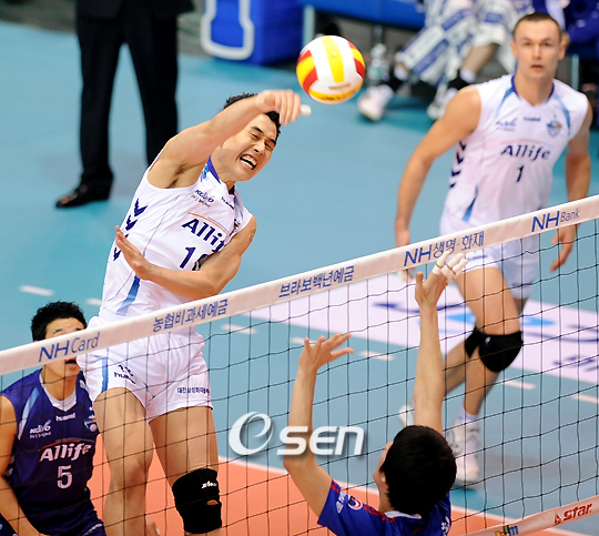 "3세트 범실을 4세트에서 만회하려고 노력했다". 대전 삼성화재 센터 고희진(28)이 24일 대전 충무체육관에서 열린 NH 농협 2007-2008 V리그 2위 대한항공과의 경기에서 블로킹 4득점을 포함, 15득점으로 올리며 활약했다. 득점은 팀 내 두 번째였지만 접전이었던 4세트서 그의 블로킹 2개는 결정적이었다. 고희진은 "3세트 중요한 순간 2번 범실을 했다. 속공 시 범실을 하게 되면 팀 전체가 불안해 한다"며 3세트 부진을 만회하려 애썼다고 밝힌 뒤 "태웅이 형이 좋은 토스를 해줬기 때문에 잘할 수 있었다"며 공을 세터 최태웅에게 돌렸다. 이어 고희진은 "막내로서 편하게 경기하려 한다. 형들이 경기할 때 분위기를 잘 이끌어줘서 더 열심히 하려 애쓴다"고 밝혔다. 최근 들어 칭찬에 인색한 신치용 감독에게 유독 칭찬을 많이 듣고 있는 그는 성실한 플레이로 삼성화재에서 없어서는 안 될 존재로 성장하고 있다. 흐뭇하게 인터뷰를 바라보던 신치용 감독은 별명이 "두꺼비손"일 정도로 블로킹에 강점을 가지고 있다고 한마디 거들었다. 한편 방신봉(LIG손해보험)과 함께 동작이 큰 세리머니로도 팬들의 인기를 끌고 있는 고희진은 "세리머니를 하면 배구가 더 잘 된다. 조용히 하면 득점도 잘 안 된다"며 이유를 밝혔다. 고등학교 시절 머리를 바닥에 찧는 세리머니도 했다는 그가 앞으로 어떤 레파토리를 보여줄지 활약이 기대된다. 7rhdwn@osen.co.kr 2세트 삼성화재 고희진이 대한항공 블로킹에 앞서 속공을 시도하고 있다. /대전=황세준 기자 storkjoon@osen.co.kr