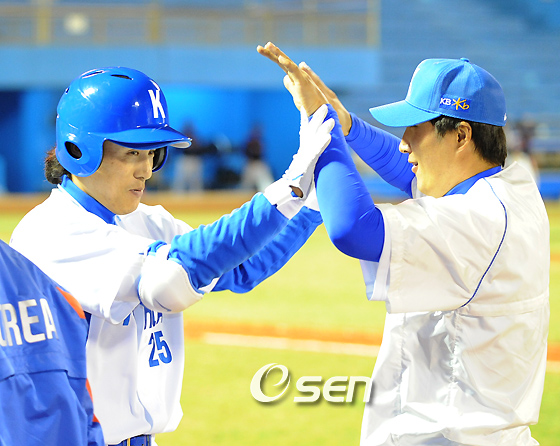 대표팀의 간판 타자 이승엽(32, 요미우리)이 첫 연습 경기에서 시원한 홈런포를 쏘아 올리며 미소를 되찾았다. 이승엽은 24일 대만 타이중구장에서 벌어진 단국대와의 연습 경기에서 12-1로 앞선 7회 세 번째 투수 이창호를 상대로 가운데 펜스를 넘는 125m 짜리 솔로 아치를 작렬했다. 지난해 10월 왼손 엄지 인대 접합 수술 후 타격감이 떨어졌던 이승엽은 유격수 앞 병살타, 삼진, 중견수 뜬 공, 볼넷에 그쳤으나 다섯 번째 타석에서 특유의 장기인 홈런포를 가동하며 자신감 회복의 계기를 마련했다. 이승엽은 경기가 끝난 뒤 인터뷰서 "연습과정일 뿐이다. 4타수 무안타와 4타수 1안타는 다르다. 부끄럽지만 좋은 일"이라고 운을 뗀 뒤 "현재 왼손 엄지에 통증은 전혀 없다. 오늘이 두 번째 연습경기인데 스윙은 마음에 들지만 타이밍이 늦어 파울이 많이 나온다"며 "경기를 치르면 좋아질 것"이라고 전망했다. 김경문 감독이 이승엽을 3번 타자로 기용할 예정이라는 전망에 대해 "타순에는 전혀 신경쓰지 않는다. 감독님의 지시대로 따를 뿐"이라고 밝힌 뒤 "어릴 적부터 3번 타자로 자주 나서 아무래도 3번이 익숙하다"고 설명했다. what@osen.co.kr