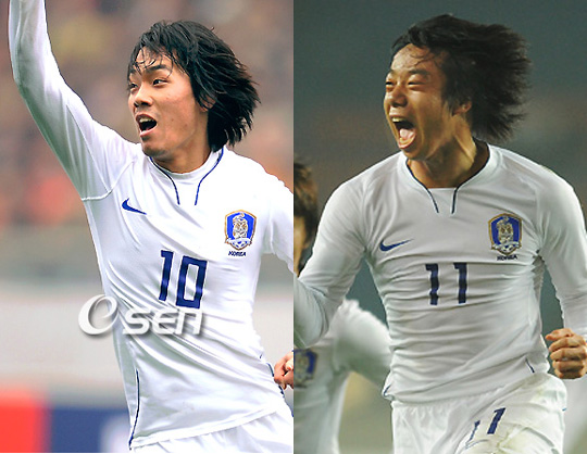 '돌아온 골잡이들의 세레나데'가 허정무 감독을 흐뭇하게 만들었다. 5년 만에 되찾아온 동아시아 패권이란 결과도 짜릿했지만 공격수들이 모처럼 시원한 득점포를 터뜨렸다는 점에서 두 배의 기쁨을 안겼다. 지난 17일부터 24일까지 중국 충칭 올림픽 스포츠센터에서 열린 제3회 2008 동아시아선수권에서 한국 남자대표팀은 1승 2무(승점 5, 득5 실4)를 기록하며 일본을 다득점에서 앞서 우승을 차지했다. 3년 반에 걸친 일본 J리그 생활을 청산하고 K리그 전북 현대로 복귀한 조재진(27)과 잉글랜드 프리미어리그에서 뛰고 있는 설기현(29, 풀햄FC), 이동국(29, 미들스브러) 등 한국을 대표하는 골게터들의 부재 속에 올린 승전보라 의미를 더했다. 젊은 얼굴이 엔트리에 대거 발탁되며 나온 우려는 기우였다. 핌 베어벡 전 감독이 대표팀을 이끄는 동안 가장 크게 질타받았던 득점력 부족이라는 해묵은 과제는 더 이상 재현되지 않았다. 비록 실점은 많았어도 ‘골 넣는 버릇’을 길렀다는 점에서 높이 평가할 만 했다. 특히 2년 여의 침묵을 깬 ‘신예 공격수’ 박주영(23, FC 서울)과 염기훈(25, 울산 현대)의 활약이 눈부셨다. 이들 콤비는 나란히 2골씩 터뜨리며 북한의 정대세, 일본의 야마세와 함께 공동 득점왕에 등극했다. 박주영은 17일 중국과의 첫 경기서 0-0으로 팽팽히 맞서던 전반 43분 염기훈의 날카로운 왼쪽 크로스를 헤딩 선제골로 연결한 데 이어 내리 2실점해 뒤지고 있던 후반 20분 상대 문전 오른쪽에서 그림같은 프리킥 골로 골네트를 흔들었다. 중국 수문장 종레이가 “이런 프리킥은 지금껏 한 번도 본적이 없다”고 극찬했을 정도로 강렬한 인상을 심어줬다. 비록 오른 사타구니 근육통으로 북한전과 일본전에 출전하지 못했지만 갈 길 급한 허정무호에 힘을 실어주기는 충분했다. ‘왼발 스페셜리스트’ 염기훈의 기량도 놀라웠다. 윙포워드와 최전방 스트라이커를 오가며 매 경기 공격 포인트를 추가했다. 중국전 히어로가 박주영이었다면 숨은 공신은 선제골을 어시스트한 염기훈이었다. 염기훈의 진가는 북한과 2차전과 일본과 최종전에서 나타났다. 북한전에서 전반 20분 큰 각도로 휘어지는 왼발 프리킥 득점을 성공시켰고, 일본전에서도 전반 14분 박원재의 왼쪽 크로스를 논스톱 터닝슛으로 연결해 가와구치가 지킨 골문을 갈랐다. 2007 아시안컵 본선을 앞두고 서귀포에서 치른 작년 6월 29일 이라크와 평가전(3-0 승)서 선제골을 넣은 뒤 거의 8개월 여 만에 다시 느낀 골 맛. 오른 발등 골절상으로 지난 시즌 후반기에 거의 활약하지 못했다는 것을 감안할 때 이번 대회에서의 부활은 여간 기쁘지 않다. ‘반쪽짜리 에이스’에서 단 한 경기로 태극 전사의 진정한 위용을 떨친 박주영과 윙포워드에서 중앙 타깃맨까지도 섭렵할 수 있는 멀티 공격수의 가능성을 확인한 염기훈의 모습은 2010 남아공월드컵 본선 진출을 향한 희망을 쏘기에 충분하다. yoshike3@osen.co.kr