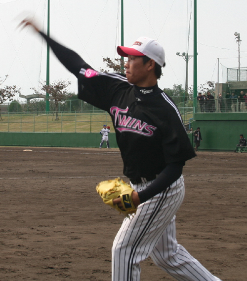LG 트윈스 일본 오키나와 전지훈련 캠프의 화두는 ‘신인 투수 3인방(정찬헌 이범준 이형종)’이다. 그 중에서도 2차 1순위로 입단한 광주일고 에이스 출신 우완정통파 정찬헌(19)은 최고 기대주로 꼽히고 있다. 팀 내는 물론 일본과 미국 관계자들로부터 ‘탐나는 기대주’로 인정을 받으며 하루가 다르게 성장하고 있다. 자매구단으로 LG 구단 캠프일을 돌봐주고 있는 주니치 드래건스의 가네다 스스무 아시아담당 스카우트는 정찬헌의 직구와 슬라이더에 깊은 인상을 받고 ‘데려다 키우고 싶다’는 의사를 보였다. 가네다 스카우트는 정진호 LG 수석코치에게 “대성할 자질을 갖춘 좋은 선수이다. 커브만 좀더 가다듬으면 최고 투수로 성장할 재목이다. 우리가 데려다 키우면 안되겠냐”며 칭찬을 아끼지 않았다. 가네다 스카우트는 지난해 이병규를 영입한 주인공이다. 주니치 스카우트뿐만 아니었다. 지난 23일까지 LG 투수들을 지도했던 봅 레이시치 인스트럭터(샌디에이고 마이너리그 투수코치)도 정찬헌을 ‘뎨려가고 싶다’며 높게 평가했다. 레이시치 인스트럭터는 김재박 감독이 현대 시절부터 스프링캠프에 초대한 전문가로 정민태 김수경 임선동 등을 지도했다. LG 캠프에서 투수들의 불펜 투구를 지켜본 한국야구위원회(KBO) 심판들도 정찬헌의 구위를 높게 평가했다. 심판들은 “묵직한 직구가 인상적이다. 공에 힘이 있다”고 평했다. LG 김재박 감독도 “아직 신인이라 좀 더 지켜봐야 한다”면서도 “팔스윙이 좋다. 마운드에서 피하지 않고 싸울 줄 안다. 대담성이 좋다”고 칭찬했다. 주위로부터 높은 평가를 받고 있는 정찬헌은 우완 신인 이범준과 함께 LG 마운드에 새바람을 불어넣기 위해 스프링캠프에서 굵은 땀을 흘리고 있다. 정찬헌이 주위의 기대대로 올 시즌 LG 투수진의 일원이 될 것인지 주목된다. sun@osen.co.kr LG 트윈스 제공.