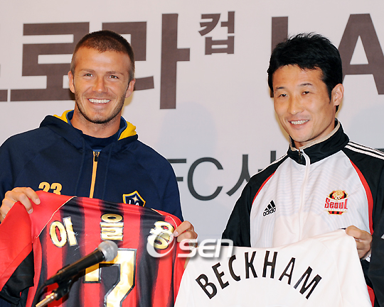 "FC 서울도 좋은 선수가 많아 좋은 경기를 할 수 있을 것이다". 27일 서울 소공동 롯데호텔에서 모토로라컵 LA갤럭시 코리아 투어 2008 공식 기자회견이 루드 굴리트 LA 갤럭시 감독과 데이빗 베컴, 아벨 사비에르 그리고 세뇰 귀네슈 FC 서울 감독과 이을용, 이청용이 참석한 가운데 실시됐다. 지난해 맨체스터 유나이티드와 경기에 출전하지 못했던 이을용은 "부상으로 작년에 맨유와 경기를 뛰지 못했다"면서 "당시 우리 선수들은 명문팀과 경기하며 배운다는 입장으로 임했지만 이번 경기는 우리도 좋은 선수들이 많기 때문에 최선을 다한다면 좋은 결과를 얻을 수 있을 것이다"고 필승 의지를 다졌다. 데이빗 베컴과 프리킥 대결에 대해 질문하자 잠시 말성이던 이을용은 "찬스가 나면 프리킥으로 넣을 수 있도록 노력하겠다"며 "그러나 올 시즌 FC 서울은 팀 플레이 중심의 경기를 보여줄 것"이라고 전했다. 함께 기자회견에 참석한 이청용은 "우선 올 시즌 목표는 우승이다"면서 "우리는 젊은 선수들이 대부분이기 때문에 이번 친선경기서 데이빗 베컴에게서 많은 것을 배우고 싶다"고 말했다. 또 이청용은 "베컴이 레알 마드리드서 뛸 때 제일 좋아했다"면서 "베컴처럼 빅리그서 활약할 수 있는 능력을 키우도록 하겠고 친선경기가 좋은 경기가 되도록 열심히 준비하겠다"고 덧붙였다. 10bird@osen.co.kr 데이빗 베컴과 이을용이 유니폼을 교환하고 있다. /황세준 기자 storkjoon@osen.co.kr N