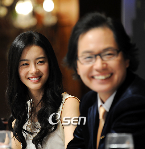 MBC 수목드라마 '누구세요?' 제작발표회가 28일 서울 논현동 임피리얼 팰리스 호텔에서 열렸다. 죽음이라는 극한 상황 앞에 놓인 아빠유령(강남길 분)이 연봉 10억 원의 냉혈한 기업사냥꾼(윤계상 분)의 몸에 빙의해 사랑하는 딸(아라)과 함께 이승에서 보내는 마지막 49일간의 이야기를 그린 드라마이다. 아라와 강남길이 기자간담회에서 다른 출연자의 얘기에 미소 짓고 있다. /황세준 기자 storkjoon@osen.co.kr