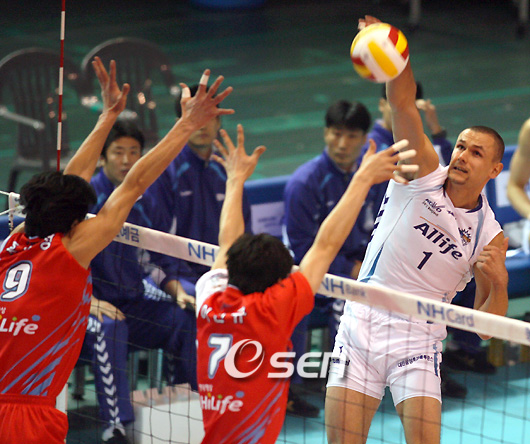 삼성화재가 안젤코의 활약에 힘입어 현대캐피탈을 물리치고 11연승을 기록했다. 삼일절을 맞아 대전에서 '영원한 맞수' 삼성화재와 현대캐피탈이 만났다. 외국인선수 안젤코와 로드리고의 대결로도 관심을 끈 이번 경기는 홈팀 삼성화재의 승리로 끝났다. 1일 대전 충무체육관에서 열린 NH농협 2007-2008 V리그 남자부 경기에서 삼성화재가 현대캐피탈에 세트스코어 3-1(25-12 17-25 25-19 34-32)로 승리를 거뒀다. 안젤코는 서브로 2득점, 블로킹으로 2득점을 올리며 총 33득점을 기록, 맹활약했고 장병철도 서브 2득점 포함 14득점을 기록하며 팀 승리를 도왔다. 첫 세트부터 코트에 나온 현대캐피탈 용병 로드리고는 18득점을 기록하며 활약했지만 서브리시브에서 불안한 모습을 노출했다. 시작은 싱거웠다. 주전들을 대거 뺀 현대캐피탈을 상대로 삼성화재는 파상 공격으로 밀어붙였다. 선발 출전한 로드리고는 첫 세트 시작하자마자 안젤코의 스파이크를 가로막으며 용병끼리 자존심 싸움을 시작했다. 하지만 곧바로 세트 중반부터 안젤코는 강서브를 현대캐피탈 코트에 꽂아 넣으며 '천하장사'라는 별명답게 현대캐피탈의 서브리시브를 흔들기 시작했다. 반면 공격에서는 좋은 모습을 보인 로드리고는 신선호와 장병철의 강서브를 받지 못하며 수비에서는 불안한 모습이었다. 결국 중앙공격까지 살아난 삼성화재는 현대캐피탈에 단 12점을 내주면서 첫 세트를 챙겼다. 2세트 들어 주전이 다시 나온 현대캐피탈은 높이를 앞세워 삼성화재에게 빼앗겼던 분위기를 되찾아왔다. 이선규와 권영민의 블로킹 득점으로 점수차를 벌린 현대캐피탈은 이후 윤봉우의 블로킹 득점으로 첫 세트와 정반대의 양상으로 경기를 이끌었다. 송인석의 스파이크 서브 득점도 결정적이었다. 2세트 후반 수비조직력이 살아난 삼성화재에 추격을 허용하기도 했지만 현대캐피탈은 로드리고가 안젤코의 스파이크를 가로막으면서 세트스코어 1-1 동점을 만드는 데 성공했다. 그러나 3세트에서 고희진이 후인정의 퀵오픈을 막아내면서 흐름을 되찾아 온 삼성화재는 최태웅의 행운의 서브득점까지 나오며 다시 앞서나갔다. 이후 장병철과 안젤코를 앞세워 리드를 빼앗기지 않은 삼성화재는 상대 범실을 틈타 3세트를 마무리 지었다. 반면 현대캐피탈은 로드리고의 서브득점과 송인석의 서브득점이 나오면서 1점차까지 추격했지만 결정적인 순간 범실을 범하며 승부의 분수령이 된 3세트를 내주고 말았다. 이후 4세트 들어 경기는 더욱 흥미롭게 펼쳐졌다. 안젤코를 내세워 섬성화재가 앞서가면 높이의 현대캐피탈이 블로킹 득점을 앞세워 쫓아가는 양상이었다. 윤봉우와 이선규의 중앙공격이 살아난 현대캐피탈은 송인석의 서브득점으로 한 발 앞서나갔다. 그러나 라이벌답게 삼성화재는 곧바로 손재홍의 블로킹 득점으로 따라붙었다. 결국 32-32까지 가는 접전 끝에 고희진의 중앙공격이 성공한 삼성화재가 후인정의 범실을 묶어 승부의 마침표를 찍었다. 한편 라이벌전답게 팽팽한 승부가 이어진 4세트서 후인정이 넘어지면서 발이 중앙선을 넘어갔고 이후 공격하고 내려오던 안젤코는 후인정 발에 걸려 넘어지는 상황이 연출됐다. 후인정은 고의성이 없었지만 안젤코는 흥분한 모습을 보였고 나머지 선수들도 심판에 항의하는 모습이었다. 7rhdwn@osen.co.kr