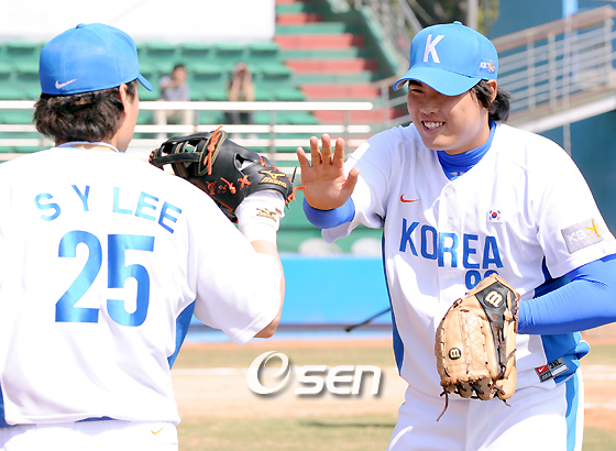 김경문 감독이 이끄는 올림픽 야구 대표팀이 대만 프로야구 디미디어 티렉스와 친선 경기서 완승, 4연승을 내달렸다. 올림픽 대표팀은 2일 대만 타이중구장에서 열린 디미디어와 친선 경기서 선발 투수로 마운드에 오른 류현진이 3이닝 4피안타 4탈삼진 무실점으로 호투하며 팀의 3-1 승리를 이끌었다. 이날 투구수는 64개이며 직구 최고 구속은 143km. 류현진은 지난달 24일 단국대와 연습 경기에 선발 투수로 마운드에 올라 3⅔이닝 2피안타 2볼넷 6탈삼진 무실점을 기록한 바 있다. 류현진은 강판한 뒤 "삼진 잡을 때 커브 1개를 던졌고 나머지는 체인지업을 던졌다. 투구 밸런스와 컨디션은 좋은 편"이라고 소감을 밝혔다. 오른쪽 팔꿈치와 왼쪽 무릎 통증을 호소하며 그동안 마운드에 오르지 않았던 '특급 마무리' 정대현은 3-1로 앞선 9회 1사 주자 없는 가운데 마운드에 올라 두 타자와 승부해 유격수 땅볼과 삼진으로 돌려세우며 ⅔이닝 무안타 무실점으로 승리를 지켰다. 대표팀은 1회 이종욱의 볼넷에 이어 2루 도루로 1사 2루의 득점 기회를 맞아 3번 이승엽의 중견수플라이 때 상대 수비진이 실책하는 틈을 타 이종욱이 홈을 밟아 첫 득점을 올렸다. 1-0으로 앞선 대표팀의 3회말 공격. 선두 타자 진갑용이 좌측 펜스에 직접 맞는 3루타를 터트린 뒤 손시헌의 희생플라이로 두 번째 득점을 기록했다. 이어 2루수 실책으로 출루한 이종욱이 2루 베이스를 훔쳐 세 번째 득점 기회를 마련했고 이승엽이 디미디어의 두 번째 투수 린칭민을 상대로 중견수 앞에 떨어지는 1타점 적시타를 날려 3-0으로 달아났다. 한편 디미디어는 0-3으로 뒤진 8회 1점을 만회하는 데 그쳤다. what@osen.co.kr 오는 3월 7일부터 대만에서 열리는 베이징올림픽 최종예선을 앞두고 대표팀이 2일 낮 대만 디미디어 티렉스와 친선 경기를 가졌다. 류현진이 3회까지 무실점으로 호투한 뒤 이승엽의 축하를 받으며 덕아웃으로 돌아오고 있다./타이중=김영민 기자ajyoung@osen.co.kr