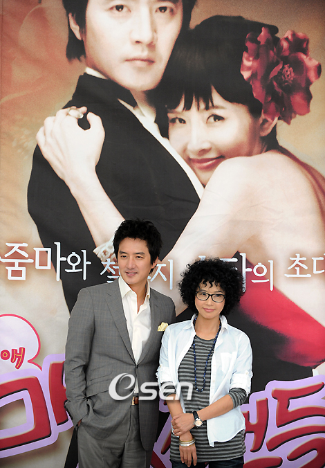 MBC 주말 특별기회 '내생애 마지막 스캔들' 제작 발표회가 최진실 정준호 변정수 정웅인이 참석한 가운데 4일 일산 MBC 드림센터에서 열렸다. 바람(?)과 함께 사라져 버린 남편의 실종 사건을 쫓던 중 첫사랑과의 생애 마지막 로맨스를 불태우는 서른아홉 아줌마의 삶을 그린 다양한 장르의 퓨전 드라마이다. 최진실 정준호가 포토타임을 갖고 있다. /황세준 기자 storkjoon@osen.co.kr