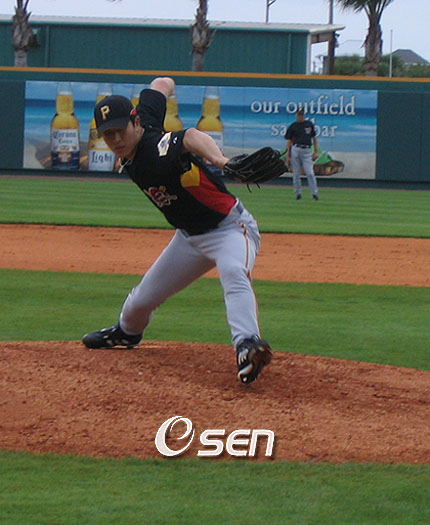 [OSEN=브래든턴, 김형태 특파원] "한 번 더 해봐야 할 것 같아요". '해적선'에 승선한 김병현(29.피츠버그 파이어리츠)이 캠프 합류후 처음으로 타자를 세워놓고 공을 던졌다. 김병현은 5일(이하 한국시간) 잔뜩 흐린 플로리다주 브래든턴의 매케니필드에서 시뮬레이션 게임(라이브 피칭)을 실시했다. 이날 오전 동료들과 함께 몸을 푼 김병현은 예정된 시간보다 늦게 불펜에서 공 30개 정도를 던지며 투구감을 조율했다. 이어 정식 필드로 이동, 마운드에 올라 5명의 타자를 상대로 역시 30개의 공을 뿌렸다. 70∼80%의 힘으로 주로 직구를 구사했으며 슬라이더 3∼4개, 체인지업 1∼2개를 시험했다. 김병현은 초반 컨트롤 난조(?)를 겪었다. 공 5개 정도를 던지는 동안 배팅 케이지의 타자가 손을 대지 못할 만큼 스트라이크존을 찾는 데 애를 먹었다. "공을 뿌린 지 2주밖에 안돼 감이 떨어졌다"는 게 김병현의 설명. 그는 "초반에는 전체적으로 적응이 되지 않아 힘들었는데, 몇 번 공을 던져보니 나중에는 몸이 풀렸다"고 말했다. 컨디션이 오르지 않은 상태였지만 김병현의 생소한 투구폼에 피츠버그 타자들은 쉽게 적응하지 못했다. 배트 중심에 정확히 맞아 외야로 뻗어간 타구는 몇개 안됐다. 이날 김병현은 예정 시간보다 다소 늦게 시뮬레이션게임에 나섰다. 타자들의 타격 훈련이 지체돼 1시간 가량 늦게 마운드를 밟았다. 밑에서 위로 뿌리는 김병현 특유의 '잠수함 피칭폼'에 익숙하지 않은 피츠버그 코치진은 김병현과 잠시 대화를 나누더니 투수보호용 철망을 뒤늦게 치웠다. 투수보호용 철망은 아랫부분이 가려진 반면 오른쪽 윗부분은 트여 있어 오버핸드 투수들에게나 적합하다. 김병현은 투구를 마친 뒤 "아직 경기에 나서려면 더 준비가 필요하다. 시뮬레이션게임을 한 차례 더 소화해야 등판이 가능할 것 같다"고 말했다. 본격적인 투구 연습이 늦어진 까닭에 좀 더 투구감을 가다듬은 뒤에야 경기에 나설 수 있다는 얘기다. 피츠버그는 원래 지난 4일과 오는 7일 시뮬레이션 게임을 실시하는 것으로 김병현의 훈련 일정을 잡았다. 그러나 4일 피칭이 하루 늦어진 점을 감안하면 김병현은 8일쯤 타자를 상대로 한 번 더 투구한 뒤 다음주초 그레이프프루트리그 시범경기 등판이 가능할 것으로 보인다. 한편 현지시간으로 4일이던 이날 아침 김병현은 작은 소동을 겪었다. 전날 코치로부터 "8시30분에 훈련을 시작한다"고 전해들은 김병현은 그 시각에 맞춰 경기장에 나섰다. 그러나 훈련은 이미 8시 15분에 시작한 상태였고, 닐 헌팅턴 단장과 존 러셀 감독은 "왜 늦었느냐"며 김병현을 추궁했다. 김병현이 대화를 통해 자신은 지시를 받은대로 이행했을 뿐이라고 또박또박 설명하자 그제서야 헌팅턴은 "우리의 실수인 것 같다"며 사과했다고 한다. 코치의 전달 과정에서 잠시 착오가 있었을 뿐이지만 피츠버그라는 구단의 조직 체계가 다소 엉성함을 알 수 있는 대목이다. workhorse@osen.co.kr