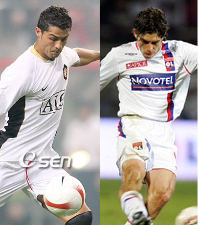 [OSEN=올드트래포드(맨체스터), 이건 특파원] '희비 엇갈린 무회전킥의 달인들'. 프리킥에는 일정한 경향이 있는 것 같다. 호베르투 카를로스와 같은 대포알 슈팅이 각광받던 때가 있는가 하면 데이빗 베컴 등과 같은 낙차 큰 커브 프리킥이 빛날 때도 있었다. 최근에는 공의 회전이 거의 없는 '무회전킥' 이 대세라고 볼 수 있다. 무회전킥의 대가라고 할 수 있는 선수는 맨체스터 유나이티드의 크리스티아누 호나우두(23)와 올림피크 리옹의 주니뉴 페르남부카누(33)다. 둘은 경기 중 멋진 무회전 프리킥을 선보이며 축구팬들의 시선을 매료시켰다. 그러나 승자가 있으면 패자가 있는 것이 승부의 세계. 딱 열 살 차이인 양 선수의 맞대결이 펼쳐진 5일 새벽(이하 한국시간) 올드 트래포드에서 희비는 극명하게 갈렸다. 승자는 맨유의 호나우두였다. 호나우두는 이날 오른쪽 윙포워드로 나서 화려한 발재간과 슈팅, 돌파력을 선보였다. 그의 발재간에 상대 수비수들은 이렇다 할 대응을 하지 못했다. 특히 후반 41분 안데르손의 슈팅이 수비벽에 막히고 나오자 호나우두는 그 공을 잡아 침착하게 수비수를 제친 후 결승골을 집어넣었다. 이같은 호나우두에게 7만 5000여 관중들은 기립박수를 보냈다. 반면 주니뉴는 자신의 실력에 50%도 보여주지 못한 채 경기를 마쳐야만 했다. 중앙 미드필더로 나선 그는 맨유의 마이클 캐릭, 대런 플레처에게 막히며 경기를 풀어나가지 못했다. 장기인 무회전 프리킥도 그 정확도가 실망스러운 수준이었다. 간간이 팀 동료들에게 향하는 프리킥이나 크로스는 날카로웠으나 직접 프리킥은 벽에 걸리거나 골대를 빗나갔다. 주니뉴가 제대로 풀리지 않자 리옹 역시 이렇다 할 모습을 보이지 못했고 결국 0-1로 무릎을 꿇고 말았다. bbadagun@osen.co.kr 크리스티아누 호나우두-주니뉴 페르남부카누.