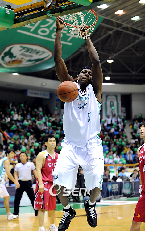 높이와 외곽 슛을 앞세운 원주 동부 프로미가 창원 LG 세이커스를 제물로 최단 기간 정규리그 1위를 확정지었다. 전창진 감독이 이끄는 동부는 7일 오후 원주 치악체육관에서 열린 2007~2008 SK 텔레콤 T 프로농구 LG와 홈 경기서 77-67로 승리를 챙기며 올 시즌 정규리그 우승을 확정했다. 이로써 36승 12패를 기록한 동부는 프로농구 역대 최다 잔여경기(-6)로 우승했다. 2005년 TG 삼보를 인수했던 동부는 프로농구 첫 정규리그 우승이라는 경사를 맞게 됐다. 동부는 또한 이날 승리로 올 시즌 팀 최다 연승인 7연승과 타이 기록을 세웠고, TG 시절인 2003~2004시즌 당시 올렸던 정규시즌 최다승(40승) 기록에도 도전할 수 있게 됐다. 반면 정규리그 2위로 플레이오프 진출을 노리고 있는 신선우 감독의 LG는 3연승 행진에 마침표를 찍으며 27승 21패를 기록, 남은 경기에 대한 부담이 한층 가중됐다. 1쿼터부터 동부의 일방적인 양상으로 전개됐다. 레지 오코사와 카를로스 딕슨의 2점 슛이 초반부터 불을 뿜은 동부는 초반부터 점수를 쌓아올리며 상대의 기선을 제압해 나갔다. 오코사는 덩크슛 1개를 포함해 6득점을 올렸고, 딕슨은 8점을 획득했다. 반면 LG는 오다티 블랭슨이 5득점, 캘빈 워너가 4득점을 올리는데 그쳐 11점차까지 벌어졌다. 두 번째 쿼터서도 동부의 기세는 계속 이어졌다. 딕슨이 상대의 거친 수비에 막혀 1득점에 그쳤으나 오코사가 건재했고, 토종 김주성과 ‘해결사’ 강대협의 감각이 살아났다. 그러나 LG의 반격도 만만치 않았다. 블랭슨과 워너가 각각 2득점에 그쳤으나 4득점을 올린 이현민과 조상현, 현주엽, 송창무 등 주력들의 고른 득점 분포로 팽팽히 맞섰다. 엎치락뒤치락 치열한 공방전 속에 여전히 우위를 지킨 쪽은 동부. 리바운드와 2쿼터서도 18-17로 앞서 도합 38-26으로 리드를 유지한 채 전반을 마칠 수 있었다. 위기 관리 능력에서 양 팀이 큰 차이를 보였다. 공격 및 수비 리바운드에선 LG가 앞섰으나 동부는 스틸과 블로킹에서 상대를 압도했고, 파울수도 적었다. 가드 박지현이 3쿼터 4분 22초에 4개의 파울을 범해 박범재로 교체되는 등 LG의 플레이는 좀처럼 풀리지 않았다. 동부는 상대 파울로 자유투를 자주 얻어내 쉽게 점수를 챙겼다. 한때 20점차까지 점수를 벌렸던 동부는 3쿼터 막판 LG의 거센 추격에 조금씩 따라잡혔고, 47초를 남긴 상황서 워너의 덩크슛을 내줘 57-47까지 추격당했으나 역시 위기에 강했다. 강대협은 마지막 1분을 남기고 절묘한 2점슛과 함께 쿼터 종료 직전 손규완의 어시스트를 받아 짜릿한 3점포를 성공시켜 62-47로 한 숨 돌렸다. 운명의 마지막 4쿼터. LG 박범재가 3점슛을 꽂아넣자 강대협과 딕슨이 연속 3점포를 성공시키면서 확실한 승리 분위기를 연출할 수 있게 됐다. 10점차에서 더 이상 점수차를 좁히지 못했던 LG는 대가를 톡톡히 치러야 했다. 박범재의 연속 3점슛과 내리 5점을 뽑아낸 이현민의 활약으로 4분여를 남기고 13점차를 만들었다. 그러나 더 이상 LG에게 행운은 따르지 않았다. 작전타임으로 LG의 상승세를 끊은 동부는 한템포 쉬며 안정을 되찾은 뒤 김주성의 멋진 덩크슛으로 승부에 쐐기를 박았다. ■ 7일 전적 원주 원주 동부 77(20-9 18-17 24-2 20-15))67 창원 LG yoshike3@osen.co.kr 7일 오후 원주 치악체육관서 열린 '2007-2008 SK텔레콤 T 프로농구' 원주 동부와 창원 LG의 경기에서 동부의 레지 오코사가 짜릿한 덩크슛을 성공시키고 있다. /원주=황세준 기자 storkjoon@osen.co.kr