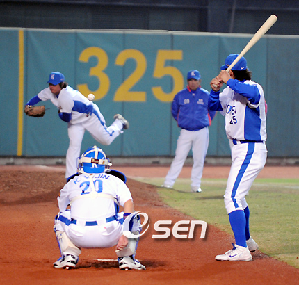 '아시아 홈런왕' 이승엽(32, 요미우리)이 불방망이를 휘두르며 팀의 2연승을 견인했다. 이승엽은 지난 8일 대만 타이중 인터컨티넨탈 구장에서 벌어진 올림픽 최종 예선 호주와의 경기에 1루수 겸 3번 타자로 선발 출장해 7-1로 앞선 3회 1사 1,2루서 우월 3점 홈런을 터트리는 등 3타수 3안타 4타점을 올렸다. 1회 좌전 안타, 2회 우익수 옆에 떨어지는 2루타로 타격감을 조율한 이승엽은 3회 이용규의 우전 안타와 고영민의 볼넷으로 만든 1사 1,2루 득점 찬스에서 호주 두 번째 투수 크리스 모데이와 볼카운트 0-1에서 인터컨티넨탈 구장의 오른쪽 담장을 넘는 3점 아치를 날렸다. 이승엽은 경기가 끝난 뒤 공식 인터뷰를 통해 "컨디션은 어제와 똑같다. 내일 경기에서 이기면 본선 진출 가능성이 50%가 된다고 생각한다. 오늘 승리를 잊고 내일 1회부터 집중력을 가지고 내일도 승리하기 위해 최선을 다하겠다"고 소감을 드러냈다. 2회 손목만 이용해 우익선상 2루타를 뽑아낸 것에 대해 "볼카운트가 불리한 상황에서 기다리던 볼이 안와 순간적인 감각으로 쳤다"며 "일본에서도 이렇게 쳐본 적이 한 번 있는데 일본야구의 경험이 큰 도움이 되었다"고 전했다. 선발 투수로 마운드에 올라 4⅓이닝 6피안타 1사구 4탈삼진 2실점을 기록한 류현진(21, 한화)은 "경기 초반에 직구를 많이 던지다 맞았다. 직구를 주로 던지다가 안타를 많이 맞아 변화구 위주 피칭으로 바꿨다"고 설명했다. what@osen.co.kr 8일 경기 전 이승엽이 류현진의 불펜 피칭 때 타석에 서서 감각을 살려주고 있다./타이중=김영민 기자ajyoung@osen.co.kr