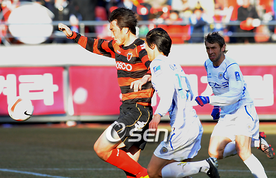 외국인 선수들이 팀 내 주축 스트라이커로 득세하고 있는 K리그에 토종 골잡이의 부활을 예고하는 기분 좋은 소식이 전해졌다. 포항 스틸러스가 공격진 보강을 위해 영입한 예비역 1년차 남궁도(26)가 그 주인공이다. 지난 8일 오후 포항 스틸야드서 치러진 전남 드래곤즈와 경기서 종료 직전 결승골을 뽑아내 팀에 2-1 승리를 안겼다. 후반 11분 브라질 골게터 알도를 대신해 교체 투입된 남궁도는 대전 시티즌 돌풍의 주역 데닐손과 함께 최전방 투톱에 포진해 출중한 활약을 펼쳐내며 세르지오 파리아스 감독의 믿음에 확실히 보답했다. 양 팀이 전반전 한 골씩 주고받아 1-1로 팽팽하던 균형은 남궁도의 투입과 함께 포항쪽으로 급격히 기울었고, 분위기를 확실히 반전시킬 수 있는 계기를 마련했다. 남궁도는 투입 10분 만에 전남 문전에서 날카로운 슈팅을 시도했지만 볼은 골대를 맞아 아쉽게 득점을 올리지 못했다. 그러나 추가시간 4분이 거의 다 흐른 후반 48분 상대 수비 실책을 틈타 결승골을 작렬했다. 공교롭게도 남궁도에게 시즌 첫 골을 내준 전남은 그의 친정팀. 2001년 전북 현대 유니폼을 입으며 K리그 무대에 데뷔한 남궁도는 2005시즌 전남에서 활약했다. 그 해 11월 광주 상무에 입대했고, 지난 시즌 9골을 터뜨려 토종 공격수의 가능성을 알렸다. 제대 이후 전남에 복귀하자마자 곧바로 짐을 꾸려 포항으로 옮긴 남궁도는 기분 좋은 한 방으로 경쾌한 첫 걸음을 뗐다. 경기가 끝난 뒤 이어진 공식 인터뷰에서 남궁도는 "국내 공격수가 K리그에서 힘을 못썼는데 책임감을 느낀다"면서 "오랜만에 토종 골잡이가 타이틀을 차지하는 모습을 보여주겠다"고 다부진 각오를 드러냈다. 그렇다고 홀로 모든 것을 책임지겠다는 생각은 아니다. 남궁도는 "우리 팀에 좋은 용병 공격수가 많기 때문에 선의의 경쟁을 통해 많은 출전과 두 자릿수 득점을 올리고 싶다"고 주먹을 쥐어보였다. 사실 공격수는 득점으로 말한다고 했다. 찬스에서 얼마나 성공시킬 수 있느냐가 중요한 치열한 골잡이 생존 경쟁에서 남궁도는 분명 남들보다 한 걸음 앞서 나간 게 틀림없어 보인다. yoshike3@osen.co.kr 지난 8일 경기서 남궁도가 결승골을 터뜨리기 직전 돌파하는 장면.