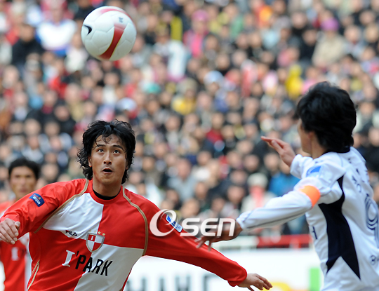 다시 돌아온 한국 축구 최고의 스타들이 올 시즌 뜨거운 출발을 알렸다. 친정팀 부산 아이파크로 되돌아온 ‘반지의 제왕’ 안정환(32)의 기세가 특히 놀라웠다. 반면 전북 현대 ‘작은 황새’ 조재진(27)은 아직 완전치 않았다. 9일 오후 부산 아시아드 주 경기장에서 열린 2008 삼성 하우젠 K리그 개막전서 황선홍 신임 감독이 이끄는 부산은 모두의 예상을 깨고, 강호 전북을 상대로 시종 우세한 플레이를 펼쳐 보이며 2-1 짜릿한 역전승을 일궈냈다. 역시 구관이 명관이었다. 지난 시즌 K리그에 복귀해 수원 삼성에 둥지를 틀었지만 시종 실망스러운 경기력을 보이다 올 시즌 부산에 입단한 안정환은 전반 종료 직전 터진 한정화의 동점골의 단초가 된 강력한 프리킥을 날려 역대 부산 홈 개막전 최다인 3만2725명 관중들을 행복하게 했다. 90년대 후반 부산벌을 수놓았던 안정환이다. 예전 등번호 8번을 달고 90분 풀타임을 누빈 안정환은 활발한 몸놀림으로 홈 팬들을 열광의 도가니에 빠뜨렸다. 여러 차례 찾아온 프리킥 찬스를 과감하게 처리했고, 수비에서도 당찬 파이팅을 보였다. 안정환의 복귀전 상대였던 조재진. 4년여 만에 K리그로 되돌아온 조재진은 그러나 별다른 인상을 심어주지 못한 채 후반 15분 최태욱과 교체됐다. 슈팅도 단 한 차례에 그쳐 본부석 오른편에 자리잡은 전북 원정 응원단을 아쉽게 했다. 안정환 본인도 자신의 플레이에 만족한다는 눈치였다. 경기가 끝난 뒤 이어진 인터뷰에서 “정말 힘든 경기였지만 팬들의 성원에 더 열심히 뛸 수 있었다. 아직 컨디션은 80퍼센트 정도지만 이번 경기를 계기로 더 잘할 수 있을 것 같다”고 담담한 소감을 밝혔다. 황선홍 감독과 ‘적장’ 최강희 전북 감독도 안정환에게 칭찬을 아끼지 않았다. 데뷔전 첫 승을 이뤄낸 황 감독은 “사령탑이 뭘 원하는지 잘 판단하고 플레이하는 선수”라며 “팀에 모든 것을 헌신하는 모습에 100퍼센트 만족한다”는 입장을 밝혔다. 씁쓸한 패배 속에서 여유를 잃지 않았던 최 감독도 “의외로 활발한 플레이를 펼쳤다. 생각보다 좋은 몸놀림이었고, 잘했다”고 격려한 반면 조재진에게는 “아직 부족했다. 컨디션이 완전치 않은데 다음 주말 홈 개막전 때는 확실히 나아질 것”이라고 덧붙였다. 한편 안정환은 "축구는 한 명이 하는 게 아니라 열 한 명의 선수들이 함께 하는 것"이라며 후배 조재진과 대결에 대해 크게 신경쓰지 않았다는 의사를 내비치기도 해 눈길을 끌었다. yoshike3@osen.co.kr