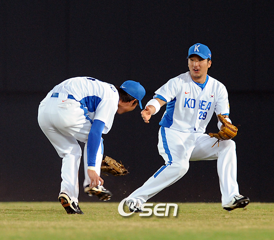 김경문 감독의 선수운용이 돋보인 한판이었다. 한국은 9일 대만 윈린 도우리우 구장에서 열린 2008 베이징올림픽 야구 최종예선 멕시코와 3차전서 8회에만 대거 4점을 집중시켜 6-1로 완승을 거뒀다. 이날 승리는 4번 타자 김동주가 없는 가운데서 이뤄내 더욱 의미가 깊다. 김동주는 허벅지 통증이 있어 이날 출장이 불가능했던 데다 모친의 병세가 악화돼 10일 오전 귀국할 예정이다. 김경문 감독은 김동주 대신 정성훈을 주전 3루수로 기용했고 5번을 맡던 이대호를 4번으로, 5번자리에는 이택근을 배치했다. 김 감독의 앞을 내다본 선수 운용은 1-1로 팽팽하던 6회부터 빛을 발했다. 한국은 4회 이승엽의 중전 적시타로 선취점을 올렸다. 하지만 4회까지 온갖 고비에도 꿋꿋하게 무실점으로 버티던 김광현이 상대 오헤다에게 좌월 동점 솔로포를 허용해 분위기가 다소 가라앉았다. 6회 이용규가 볼넷으로 걸어나가며 다시 분위기를 만든 한국은 1사 1, 2루에서 이대호의 우익수 키를 넘기는 2루타성 안타에도 불구하고 득점을 올리지 못했다. 이용규가 이대호의 공이 잡히는 것으로 착각했기 때문이다. 결국 해결사는 이택근이었다. 이택근은 상대 투수 실바의 공을 의도적으로 밀어쳤다. 곧바로 홈송구가 이뤄졌지만 빠른 발을 가진 이용규의 재치있는 슬라이딩은 득점과 연결됐다. 팀을 위한 이택근의 희생플라이가 빛을 발한 것이다. 2-1로 살얼음 리드를 지키던 8회에는 무사 1, 2루에서 이승엽의 적시타로 한 점을 달아났다. 계속된 공격에서 6회 대주자로 나섰던 이종욱은 우중간을 완전히 꿰뚫는 2타점 3루타로 사실상 승부에 쐐기를 박았다. 여기에 앞서 희생플라이를 날린 이택근은 다시 한 번 중견수 희생플라이로 승부를 결정지었다. 특히 이종욱과 고영민은 9회초 마지막 수비에서 잇따라 호수비를 펼쳐 김 감독의 얼굴을 활짝 피게 만들었다. 이종욱은 좌익 선상 위에 떨어지는 공을 빠른 발과 정확한 판단력을 앞세워 가뿐하게 잡아냈다. 고영민은 중견수와 2루수 뒤에 떨어지는 빗맞은 타구를 끝까지 좇아 역동작으로 잡아냈다. letmeout@osen.co.kr 멕시코전 9회초 1사 후 2루수 고영민이 플라이를 잡아내자 중견수 이택근이 웃으며 부축해 주려 하고 있다. /윈린=김영민 기자ajyoung@osen.co.kr