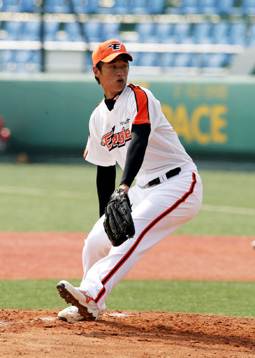 [OSEN=이상학 객원기자] 한화 6년차 우완 윤규진(24)이 부활 가능성을 보였다. 윤규진은 지난 9일 대전구장에서 열린 KIA와의 시범경기에 선발 등판해 5이닝 3피안타 1볼넷 4탈삼진 무실점으로 호투했다. 경기 전 한화 김인식 감독은 윤규진에 대해 “잘 던지면 (1군에) 남는 거고, 그렇지 않으면 어쩔 수 없다”고 특유의 심드렁한 표정을 지었다. 하지만 경기 후에는 “투수들이 전체적으로 좋지 않았지만 윤규진은 좋았다”고 만족해 했다. 이날 윤규진은 5회까지 총 투구수 63개로 비교적 경제적인 피칭을 했다. 1회에는 윌슨 발데스에게 안타를 맞고 이현곤에게 볼넷을 허용하며 위기를 자초했지만 나지완을 병살타로 처리하며 위기를 넘겼다. 3~4회에는 탈삼진 하나씩을 곁들이며 삼자범퇴로 처리했고 5회에도 마지막 타자 김종국을 삼진으로 돌려세우며 위력을 과시했다. 5회에는 이날 최고구속인 시속 146km 빠른 직구를 연속해 던질 정도로 힘이 붙은 모습이었다. 지난 2003년 대전고를 졸업하고 2차 2번으로 한화에 입단한 윤규진은 2004년부터 1군 주력 투수로 뛰었다. 2004년에는 선발·마무리를 넘나들며 3승4패3세이브 방어율 4.57로 가능성을 보였다. 그 해 8월17일 대전 두산전에서는 9이닝 9피안타 무사사구 3실점으로 완투승도 기록했다. 2005년은 윤규진의 가능성과 진가가 유감없이 발휘된 한 해였다. 53경기에 등판, 4승4패5세이브9홀드 방어율 3.34로 활약하며 불펜의 절대적인 핵으로 맹활약했다. 그러나 2006년 팔꿈치 수술을 받고 시즌-아웃됐다. 1년 넘게 재활에 몰두한 윤규진은 지난해 후반기가 되어서야 1군에 모습을 드러냈다. 8경기에서 1패1홀드 방어율 3.95라는 평범한 성적으로 몸 상태가 완전치 않음을 보였다. 하지만 수술 2년째가 된 올 시즌은 전지훈련을 온전하게 소화하며 준비했다. 투구 폼에도 약간의 변화를 준 후 제구력이 안정됐다는 평가를 받고 있다. 김인식 감독은 “윤규진이 지난해보다 많이 좋아졌다. 아직 보직을 정하지 않았지만, 올 시즌 활용폭이 클 것으로 기대한다”고 밝혔다. 부상과 재활의 터널에서 벗어난 윤규진에게 조금씩 햇살이 비치고 있다. 한화 이글스 제공.