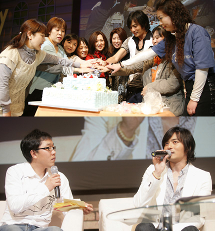 월드스타는 월드스타다. 장동건(36)의 팬미팅에 전 세계 16개국에서 1000여 명의 팬들이 몰려들었다. 장동건의 팬미팅은 지난 8일 삼성동 코엑스 오디토리움에서 2시간 동안 진행됐다. 장동건의 모습을 보기 위해 일본 중국 홍콩 대만 미국 영국 코스타리카 멕시코 등 전 세계 16개국의 다양한 팬들이 모였다. 멕시코 팬클럽은 “처음으로 장동건 씨를 이렇게 실제로 만나게 되어 너무 기쁘다”며 “멕시코에서 장동건씨의 인기가 대단하다”고 밝혔다. 장동건은 뉴질랜드에서 영화 ‘런드리 워리어’의 촬영을 마치고 6개월 만에 귀국했다. 지난해 3월 일본 도쿄 부도칸에서 열린 팬미팅 이후 국내에서는 2년 만에 다시 팬들과 만나는 자리였다. 장동건은 팬미팅 자리에서 영화 ‘런드리 워리어’ 촬영 차 뉴질랜드에서 머물며 6개월 동안 직접 촬영한 영상을 보여줬다. 영상을 통해 뉴질랜드에서의 일상뿐만 아니라 할리우드 영화 스태프들과 즐거운 한때의 모습을 보여줘 팬들의 궁금증을 풀어줬다. 팬미팅은 MC 김제동의 진행으로 가수 성시경 플라이투더스카이의 축하무대가 있었다. 또한 공형진 한재석 현빈 신민아 등이 직접 참석해 자리를 빛냈다. crystal@osen.co.kr 스타엠 제공.
