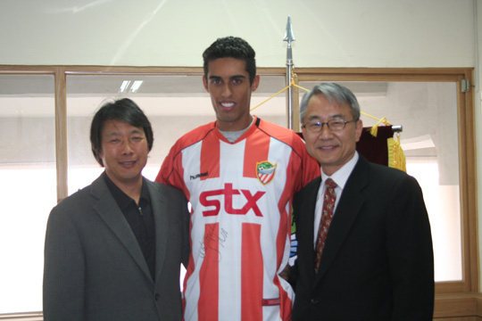 경남이 브라질 출신의 장신 공격수를 영입해 6강 플레이오프 진입을 위한 시동을 걸었다. 2008시즌 6강 플레이오프 진출을 목표로 9개월간의 대장정에 나섰던 경남 FC가 12일 브라질 용병 웰링턴 실바(21)를 영입했다고 밝혔다. 실바는 189cm의 장신 공격수로 브라질 1부 마릴야 AC클럽 소속으로 2007년 자국리그에서 30경기에 출전해 13골을 터트리는 등 득점력이 높은 공격수다. 순간 돌파력이 뛰어나 상대 수비진을 헤집고 다니며 찬스를 만들어 득점을 만드는 개인기가 뛰어난 선수. 7살 때부터 축구를 시작했다는 실바는 14살 때 본격적으로 유소년 축구 클럽에 가입했고 16살 때 처음으로 프로팀과 계약을 했다. 조광래 감독은 "주중 경기도 있고 게임수가 많기 때문에 전체적으로 공격수가 부족한 경남에 실바가 합류하면 공격력이 배가될 것"이라며 기대감을 나타냈다. 12일 오전 경남 FC 대표이사실에서 김영만 대표이사, 조광래 감독, 최우환 사무국장과 브라질 에이전트 등이 참석한 가운데 입단식을 가진 실바는 프로축구연맹 등록과 취업비자 발급을 마쳤기 때문에 이르면 오는 주말 광주 원정경기부터 출전할 수 있다. 실바 또한 "지난 토요일까지 경기를 뛰고 왔기 때문에 컨디션에는 문제가 없을 것이다"며 몸상태에 대해서는 자신감을 드러냈다. 이어 그는 "한국은 좋은 곳이고 꼭 가고 싶은 마음이 있었다. 사람들도 친절하고 에너지가 느껴지는 나라다. 좋은 경기를 보여주고 싶다"고 소감을 밝혔다. 이로써 경남은 기존 수비수 산토스와 새롭게 영입한 실바로 외국인 선수 3명 중 2명을 채웠다. 실바가 J리그로 떠난 까보레의 몫을 대체할 수 있을지 경남의 올 시즌 활약이 기대된다. 7rhdwn@osen.co.kr 경남 FC 제공.