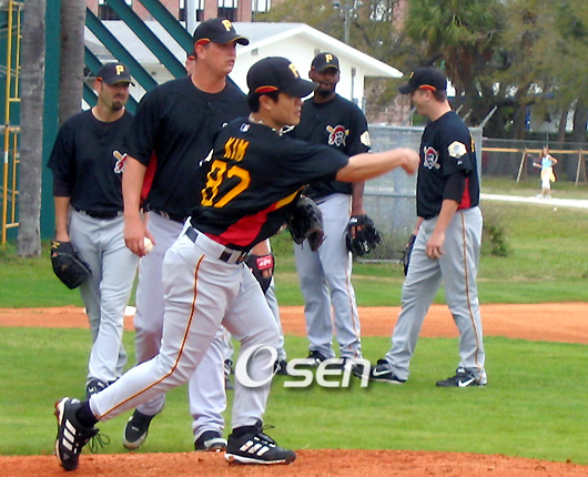 "(김)병현이에게 큰 도움이 될 겁니다." 대만 타이중에서 벌어지는 베이징 올림픽 예선에서 한국을 8년 만에 본선 무대로 이끈 이승엽(32, 요미우리)이 초청선수 자격으로 피츠버그 스프링캠프에 참가 중인 우완 구와타 마쓰미(40)가 김병현(29)에게 큰 도움을 줄 것이라고 말했다. 구와타는 지난 1986년부터 20년간 요미우리의 간판 투수로 활약하며 개인 통산 173승을 거둔 일본 최정상급 투수. 지난해 피츠버그와 마이너리그 계약을 맺은 구와타는 빅리그에서 승리없이 1패(방어율 9.43)에 그치며 트리플A로 강등됐다. 엎친 데 덮친 격으로 오른 발목 부상까지 겹쳐 시즌이 끝난 뒤 방출 통보를 받았다. 그러나 빅리그 진출에 대한 의지가 강해 지난 달 초청선수 자격으로 다시 피츠버그 스프링캠프에 합류했다. 2006년 요미우리로 이적한 뒤 구와타와 1년간 한솥밥을 먹었던 이승엽은 "(구와타를) 많이 안 봤지만 워낙 열심히 했던 선수로 기억한다"며 "구단과 선수들에게 이미지가 좋다"고 평가했다. 이승엽은 구와타의 뛰어난 몸관리에 관한 일화를 들려줬다. "요미우리 캠프가 열리는 미야자키에 구와타 로드라고 있다. 구와타가 매일 러닝하는 코스인데 너무 열심히 뛰어 잔디가 없을 정도"라고 전했다. 불혹의 나이에도 불구하고 빅리그에 진입하기 위해 노력하는 구와타의 도전 정신은 이승엽에게 큰 희망이 된다. "몸 관리만 잘 하면 나도 가능하지 않겠냐"며 "열심히 준비하며 기회를 기다리겠다"고 강조했다. 이승엽은 현실에 충실해야 한다는 말도 잊지 않았다. "지금은 요미우리에서 최선을 다하는 것이 중요합니다". what@osen.co.kr