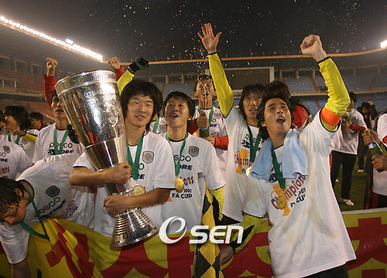 '박항서 매직'은 호주에서 통하지 않았다. 박항서 감독이 이끄는 전남 드래곤즈는 지난 12일 호주 멜버른의 델트스라돔에서 열린 2008 AFC 챔피언스리그 G조 1차전에서 전 후반 각각 한 골 씩을 내준 끝에 멜버른 빅토리 FC에 0-2로 패했다. FA컵서 2년 연속 우승, 잇달아 AFC 챔피언스리그에 출전한 전남은 지난해에 이어 올해도 첫 걸음을 산뜻하게 떼지 못했다. 그러나 전남의 관계자는 "그래도 희망은 있다"고 했다. AFC 챔피언스리그 본선에는 24개팀이 출전, 지역별 안배에 따라 4개팀씩 7개 조로 나뉘게 된다. 팀 당 6경기를 펼쳐 상위 1팀이 8강에 진출, 자동 진출권을 지닌 전 대회 우승팀과 토너먼트를 치른다. 비록 첫 판서 완패했지만 전남에 희망은 있다. G조의 나머지 팀들이 한 골씩 주고받으며 1-1 무승부로 경기를 끝냈다는 것도 위안이다. 전남에 고무적인 것은 박 감독이 주창하는 밸런스 축구의 핵이 될 수 있는 김치우가 오는 19일 감바 오사카전부터 돌아온다는 사실이다. 여기에 수비의 핵이자 세트 피스의 강자 곽태휘도 곧 돌아올 예정이기에 박 감독은 "한국에서는 좀 더 나은 모습을 볼 수 있을 것이다"고 말할 수 있었다. 사실 전남이 호주 원정서 기대 이하의 모습을 보인 것은 상대팀 멜버른이 강팀인 이유도 있지만, 공수의 핵인 선수들이 부상으로 결장했기 때문이다. 대표팀에서 부상을 당한 김치우와 고기구, 그리고 주장 곽태휘가 개막전에서 부상을 당한 상황에서 전남은 본연의 실력을 다 발휘할 수 없었다. 이런 상황에서 지난해 경남 FC를 이끌고 '박항서 매직'을 보여주었던 박 감독의 전술, 전략도 별무소용이었다. 그러나 부상 선수들의 복귀와 멜버른 전에서 좋은 모습을 보인 시몬-산드로 투톱이 정상적으로 돌아간다면 전남은 다시 한 번 아시아 제패의 희망을 불태울 전망이다. stylelomo@osen.co.kr 지난해 FA컵 2연패에 성공한 뒤 환호하는 전남 선수단.
