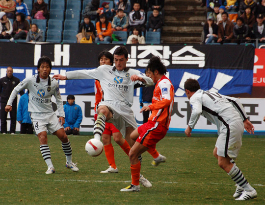 “돌아온 라돈치치와 새로운 용병 보르코를 앞세워 2연승 사냥에 나선다”. 인천 유나이티드가 오는 16일 문학경기장에서 전남 드래곤즈를 상대로 올 시즌 K-리그 홈경기 개막전을 갖는다. 지난 9일 서귀포월드컵 경기장에서 열린 올 시즌 첫 경기에서 인천은 전반 38분 라돈치치의 선제 결승골과 후반 종료 직전 새로운 용병 보르코의 추가골로 제주 유나이티드를 2-0으로 누르고 산뜻한 출발을 한 바 있다. 이 기세를 몰아 인천은 지난 시즌 전남과 정규리그에서 1승1무, 컵대회 6강 플레이오프에서 1승 등 2승1무의 압도적 우위를 보인 것을 앞세워 2연승에 도전한다. 특히 지난해 FA컵 대회 4강 길목에서 발목을 잡힌 아쉬움을 이 날 홈에서 설욕한다는 각오다. 장외룡 감독도 “올 시즌은 미드필드부터 시작되는 공격축구와 좌우 라인을 이용한 조직력 전술로 상대를 압박하는 경기를 지속적으로 이어가겠다”며 “전남전은 홈이라는 이점을 살려 인천 팬들에게 승리의 기쁨을 안겨줄 것”이라고 밝혔다. 영국 유학을 마치고 돌아온 장외룡 감독은 괌 해외 전지훈련과 국내훈련을 통해 탄탄한 전력을 구축하며 올 시즌을 준비해왔다. 특정 선수에 의존하지 않고 빠른 공수 전환과 팀 전술로 최대한 전력을 끌어올리겠다는 장 감독의 구상이 첫 경기부터 증명된 것. 제주와 원정경기에서 경기를 주도한 인천은 실점 없이 1승을 올리며 올 시즌 플레이오프 진출 목표 달성을 밝게 했다. 특히 오랜 부진을 털고 돌아온 라돈치치가 공격의 선봉에서 제 몫을 다해준 인천은 여기다 세르비아에서 날아온 새 용병 보르코까지 빠른 기동력으로 폭넓은 활약을 보였다. 그동안 인천의 큰 고민이었던 데얀의 이적으로 인한 공격력 약화를 말끔히 씻어주는 경기였다. 인천은 전남과의 홈경기서 두 선수의 활약을 또 한 번 기대하고 있다. 첫 홈경기인 만큼 인천은 화끈한 공격력을 앞세워 골잔치를 벌여 경기장을 찾은 인천 팬들에게 기쁨을 선사할 생각이다. 또한 인천은 제주와 첫 경기를 통해 지난해 10골 6도움으로 국내 선수 최다 공격포인트를 기록한 김상록의 노련한 경기 운영을 확인할 수 있었다. 공격과 수비를 조율하며 라돈치치의 결승골을 도운 김상록은 여전히 건재함을 과시하며 인천의 공격에 '화룡점정'같은 역할을 했다. 미드필드 라인은 ‘중원 철벽’ 드라간과 노종건에 ‘작은 탱크’ 전재호가 쉴 새 없이 왼쪽 라인을 오르내리며 탄탄한 허리라인을 구축했고 강철 체력을 자랑하는 이적생 이장관도 오른쪽 윙백으로 안정적인 플레이로 허리싸움을 장악할 것으로 보인다. 수비진은 임중용, 김학철의 노련함에 프로 2년차 ‘젊은 피’ 김영빈이 성숙된 모습으로 가세, 전통의 ‘짠물 라인’에 힘을 보탰다. 한편 인천은 이날 4만7000여 명의 시민주주와 가족들까지 초대, 시민과 함께 홈 경기 개막전을 치른다. 또한 이날 경기는 안상수 구단주와 GM대우 마이클 그리말디 사장, 탤런트 최수종이 시축을 한 뒤 박창규 인천시의회 의장의 개막 선언과 함께 서포터스와 관객의 ‘휴지폭탄’ 퍼포먼스로 경기를 시작할 예정이다. 홈 개막전을 앞두고 다양한 이벤트를 준비한 인천은 경기에 앞서 GM대우 임직원과 연예인 축구단 ‘베스트 일레븐’팀의 친선경기와 최수종의 GM대우 한마음재단 명예이사 위촉식도 갖을 예정이다. 하프타임에는 인기가수 변진섭이 자신이 부른 인천구단 응원가 등 축하 공연도 열린다. 7rhdwn@osen.co.kr 지난 9일 인천-제주전=인천 유나이티드 제공.