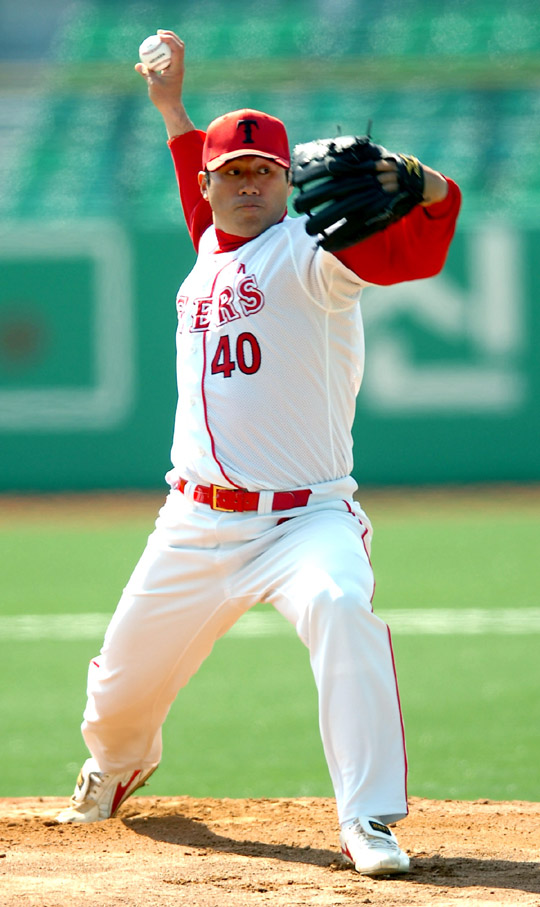 메이저리그 출신 KIA 투수 서재응(31)이 시범경기에 첫 선발등판했으나 부진한 모습을 보여주었다. 변화구 제구력이 문제였다. 서재응은 14일 광주구장에서 열린 두산 베어스와의 홈 경기 선발등판했다. 시범경기 두 번째 등판. 성적은 3이닝 동안 2루타 3개 포함 4안타 1볼넷을 내주고 3실점했다. 볼넷 1개와 탈삼진 2개를 기록했다. 지난 9일 대전 한화전에서 두 번째 투수로 등판, 1이닝 동안 2안타 1실점했다. 이날은 허벅지 부상 이후 첫 선발등판, 선발용 구위를 점검했으나 2경기 연속 실점을 하는 등 아직은 정상구위가 아니었다. 투구내용도 숙제를 안겨주었다. 투구수는 51개. 최고구속은 145km를 마크했고 평균은 140km대에 미치지 못했다. 체인지업(15개) 커브(2개) 슬라이더(5개)를 던졌다. 직구의 좌우 컨트롤은 먹혔으나 변화구 제대로 구사되지 않았다. 4안타 모두 체인지업 등 변화구를 던지다 얻어맞은 것이었다. 변화구의 각이나 힘이 무뎌 보였다. 서재응은 1회1사후 볼넷을 내줬으나 병살타를 유도, 무실점으로 막았다. 그러나 2회 집중 4안타를 내주고 크게 흔들렸다. 선두타자 김현수에게 우전안타를 맞은 뒤 1사후 채상병과 이대수에게 중월 2루타와 좌익선상 2루타를 맞고 2실점했다. 2사후에 전상열에게 다시 우익선상 2루타를 내주고 3점째를 허용했다. 그러나 서재응은 3회에는 안정을 되찾았다. 2번 김재호와 3번 유재웅을 외야수 플라이로 잡아냈고 4번 김현수는 127km짜리 체인지업을 던져 헛스윙 삼진으로 처리했다. 서재응은 4회부터 마운드를 좌완 진민호에게 넘겨주었다. sunny@osen.co.kr KIA 타이거즈 제공