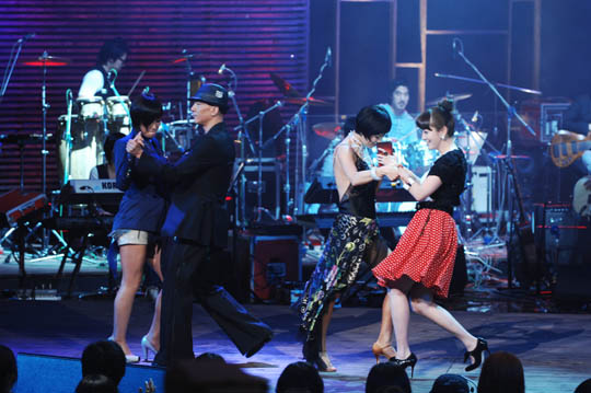 김정은(32)이 MC로 나선 SBS 뮤직 토크쇼 ‘김정은의 초콜릿(연출 성영준 변진선)’ 촬영 중 깜찍한 댄스를 선보여 시선을 끌었다. 김정은의 댄스 장면은 깜짝 게스트로 출연한 DJ KOO 구준엽과 댄스스포츠 박지은 선수가 초대가수 거미의 ‘Don’t know why’에 맞춰 룸바를 멋지게 춘 게 발단이 됐다. 이들의 멋진 춤솜씨에 반한 김정은이 자신도 춤을 배워보고 싶다고 즉석에서 청한 것. 박지은 선수는 얼마 전 ‘무한도전’에 출연해 멤버들에게 댄스스포츠를 가르쳐서 유명해진 인물. 그러나 방송 인연은 구준엽과 먼저 맺었다. 지난 2006년 2월에 방영된 설날특집 프로그램 ‘셀 위 댄스(Shall we dance)’에서 통해 구준엽과 살사를 선보여 눈길을 모았던 바 있다. 박지은은 당시 연출이자 현재 ‘김정은의 초콜릿’의 연출자인 성영준 PD의 제안으로 이번 방송에 출연하게 됐다. 구준엽과 박지은의 멋진 룸바 후에 이뤄진 토크에서 김정은은 “춤을 배워보는 시간을 가지겠다”며 춤을 가르쳐 달라고 부탁했다. 이에 박지은은 룸바와 차차차에 대해 간단히 소개하고, “투 쓰리 차차차”로 박자를 넣어서 김정은과 구준엽 그리고 거미 등의 깜찍한 댄스를 유도했다. 한편, 이어진 토크에서 구준엽이 “우리 어머니와 이서진 씨 어머니가 중학교 동창이시라 매일 통화하신다. 정은 씨 이야기도 하시더라”고 말해 김정은을 미소 짓게 만들기도 했다. 박지은 구준엽의 멋진 스포츠댄스와 김정은의 깜찍한 댄스는 18일 밤 12시 35분 방영된다. ricky337@osen.co.kr
