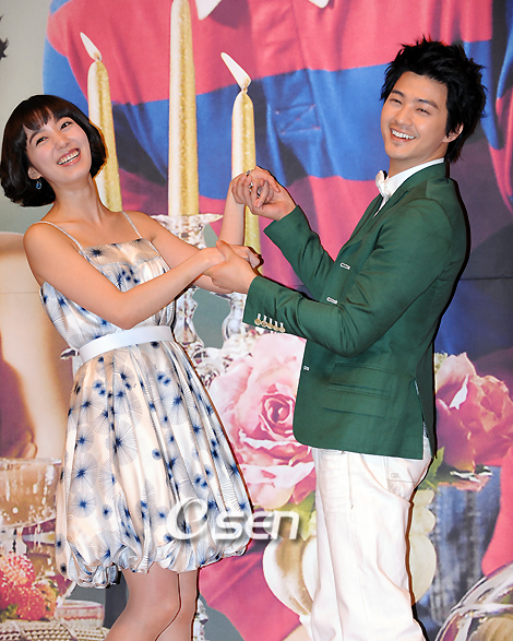 SBS 금요드라마 '우리집엔 왜왔니' 제작발표회가 18일 서울 양천구 목동 SBS에서 열렸다. 갑부 재산가의 공개 사위 모집에 덜컥 합격한 백수 청년(김지훈 분)이 그동안 악연으로 지냈던 재벌가 딸(이소연 분)과의 데릴사위 인턴기간 동안에 생기는 에피소드를 그린 드라마이다. 김지훈 이소연이 포토타임을 갖고 있다. /황세준 기자 storkjoon@osen.co.kr