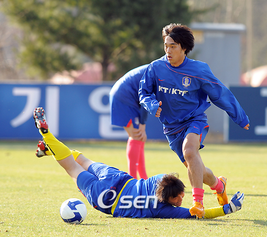 "훈련이 아닌 실전으로 생각하라". 35분 가량 진행된 슈팅 훈련도 시험 무대였다. 지난 20일 오후 파주 NFC서 2기 허정무호가 오는 26일 중국 상하이에서 열리는 2010 남아공 월드컵 아시아 3차 예선 북한전에 대비한 첫 훈련을 시작했다. 해외파 6명과 오른쪽 발목 염좌로 대표팀에서 제외된 오장은 그리고 같은 부상으로 재활 중인 이종민을 제외한 16명은 19일 하우젠컵 개막전으로 지친 몸을 회복하는 데 주력했다. 그러나 20분 간의 러닝과 스트레칭이 끝나면서 몇몇 선수들은 굳은 표정으로 예상치 못했던 훈련에 임해야 했다. 경기에 뛰지 않았던 한태유의 패스를 받은 조재진이 슈팅으로 연결하던 연습이 어느새 박주영, 염기훈까지 참가한 공격수들의 컨디션을 파악하는 슈팅 훈련이 되고 만 것이다. 여기에 덩달아 김영광, 김용대, 정성룡 등 따로 훈련하던 수문장들도 경쟁적인 분위기에 휩싸이고 말았다. 비록 수비수를 세워놓고 한 훈련은 아니었지만, 가상의 박지성으로 상정된 한태유의 패스를 받아 날리는 터닝슛, 2대1 패스로 골키퍼를 확인하고 날리는 슈팅 등 다양한 훈련은 35분 간 지속됐다. 선수들의 훈련을 지켜보던 허정무 감독은 날카로운 지적으로 선수들을 긴장케 했다. 박주영의 슈팅이 두 번 연속 김영광의 선방에 막히자 "골키퍼 기분 맞춰주나"고 지적하더니 김영광에게는 "하루 종일 누워 있을 거야"라고 외치며 선수들을 독려했다. 여기에 염기훈이 멋진 칩샷을 성공시킨 후 쉬운 슈팅을 놓칠 때는 "실전에서 이런 일이 많다"며 "훈련을 위한 슈팅이 아니다"고 호통을 쳤다. 허 감독은 "훈련이 아닌 실전으로 생각하라"는 의미심장한 한 마디를 외치며 선수들의 분발을 재촉했다. 허 감독의 발언은 그만큼 이 훈련이 중요하다는 뜻이자 이날 훈련 결과에 따라 선발 여부가 결정된다는 의미이기도 했다. 이는 설기현의 합류로 긴장하고 있는 공격진과 한 자리를 놓고 치열한 경쟁을 벌이고 있는 수문장 후보 3인 모두에게 해당되는 이야기였다. 경기가 끝난 후 가진 인터뷰에서도 이런 분위기는 여전했다. 허 감독은 "선수 컨디션과 팀 적응력을 중심으로 선발 라인업을 짜겠다"며 선언했고, 선수들은 지친 얼굴로 훈련장을 빠져 나갔다. 허정무호는 지난 17일 발표된 최종명단으로 또 한 번의 무한 경쟁을 예고한 바 있다. 소집 첫 날부터 경쟁 구도에 돌입한 허정무호가 오는 26일 북한전에서 어떤 결과를 보여줄지 더욱 기대되고 있다. stylelomo@osen.co.kr