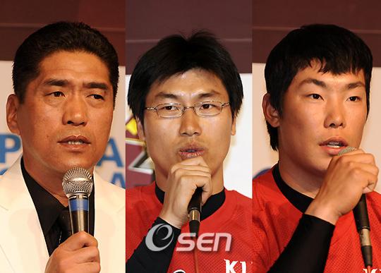 [OSEN=이상학 객원기자] 조범현 감독은 새하얀 자켓에 검정색 셔츠를 입고 나타났다. 지난 3년간 미디어데이에 흰색 자켓을 입은 사령탑은 한 명도 없었다. 장성호는 8개 구단 간판스타 중 유일하게 붉은 색의 강렬한 원정 유니폼을 입고 등장했다. 시범경기 깜짝 스타였던 대졸신인 나지완이 말할 때에는 카메라 플래시가 집중적으로 터졌다. KIA는 이미 지난해 최하위라는 꼬리표를 떼고, 막강 다크호스 중 하나로 발돋움한 것이 지난 25일 열린 미디어데이 기자회견에서 여과없이 증명됐다. 조범현의 포부 조범현 감독은 "SK와 두산의 전력이 강하다고 느껴진다. 삼성도 마찬가지다. 나머지 4강 한 팀이 KIA가 됐으면 좋겠다. 하지만 벤치의 힘이 좋은 한화에 높은 점수를 주고 싶다"고 말했다. 하지만 한화 김인식 감독은 도리어 "KIA가 돌풍을 일으킬 것"이라고 전망했다. 김인식 감독뿐만 아니었다. 4강 후보 팀을 꼽아달라지는 질문에 '김치와 깍두기' 차이를 논하며 응답을 피해간 롯데 제리 로이스터 감독을 제외하면 LG 김재박 감독만이 유일하게 KIA를 4강 후보에서 제외했다. 나머지 4개 팀은 하나 같이 KIA를 4강 후보로 지목했다. 서재응, 호세 리마, 윌슨 발데스 등 메이저리거들이 대거 가세했지만 시범경기에서 당장 가시적인 성과를 올렸다는 점에서 높이 평가됐다. 조 감독은 "지난해 가을부터 지금까지 아쉬운 점도 많았지만 훈련을 정말 열심히 했다"고 말했다. 이 기세가 이어져 시범경기에서도 1위를 차지했다. 마치 지난해 SK를 보는 듯하다. 조 감독은 "작년에 많이 졌다. 하지만 시범경기에서 1위를 함으로써 선수들이 이길 수 있다는 자신감을 얻었다"고 밝혔다. 지난해 KIA는 패배 의식에 찌든 팀이었다. 이어 조 감독은 "KIA 팬들의 자긍심을 높여 드리겠다"고 팬들에게 포부를 전했다. 지난 몇 년간 호랑이 군단의 위상은 바닥으로 떨어졌다. 조 감독은 무너진 타이거즈 팬들의 자존심 회복이라는 원대 목표를 포부로 밝힐 정도로 팀 전력에 자신있다. 조 감독은 팬들에게 "멋진 야구로 많은 팬들이 야구장에 찾아올 수 있도록 하겠다"고 덧붙였다. 장성호의 목표 장성호는 지난해 시즌 중 이종범이 2군으로 강등되자 주장직을 넘겨받았다. 그러나 장성호는 강렬한 카리스마나 리더십과는 거리가 먼 선수 중 하나였다. 팀 성적에 관계없이 언제나 3할 타율만 당연하게 기록했다. 그러나 지난해 팀 추락과 함께 9년 연속 3할 타율 아성도 무너졌다. 부상이라는 악재가 있었지만, 팀을 위기의 구렁텅이에서 구해내지 못했다는 자책감에 방망이를 마구마구 내려찍었다. 그만큼 팀 성적에 대한 갈증이 크다. 안경을 착용하며 지적인 스타일로 변신한 장성호는 "작년에는 딱딱한 분위기였지만 올해는 편안한 분위기다. 감독님이 섬세하고 빠른 야구를 원하시기 때문에 가을 캠프 때부터 많이 생각하고 또 많이 변했다. 개인적인 사고도 많이 바뀌었다"고 털어놓았다. 장성호는 3할 타율에 대한 욕심을 버리고 팀에 포커스를 맞추기로 했다. 올해는 시즌 시작부터 주장 완장을 찼다. 단타보다는 장타로 공헌도를 높이겠다는 의지도 드러냈다. "주장을 맡은 만큼 개인보다 팀이 잘 되는 것에 만족을 느끼겠다"는 것이 장성호의 말이다. 이어 장성호는 "작년에 부상이 많았는데 부상만 없으면 자신있다. 하지만 우승보다는 일단 한국시리즈에 진출할 수 있도록 하겠다"고 말했다. 타이거즈가 한국시리즈에서 우승한 것도 어느덧 11년 전 일이 되어버렸다. 이후 KIA는 매년 우승만 외쳤을 뿐 한국시리즈에는 오르지도 못했다. 한국시리즈 문턱에서 주저앉다 근년에는 바닥으로 떨어졌다. 그런 면에서 장성호의 목표 설정은 한국시리즈 우승만 외쳐댔던 과거와는 분명 다르다. 장성호는 "주장으로서 선수단을 잘 이끌겠다"고 거듭 강조했다. 나지완의 영광 미디어데이 행사에서 가장 많은 주목을 받은 신인은 KIA에 2차 1번으로 지명된 대졸신인 외야수 나지완이었다. 시범경기에서도 타율 3할1푼8리 2홈런 7타점으로 맹활약했다. 나지완은 "명문 구단 KIA에 입단해 영광으로 생각한다"고 말문을 열었다. 호랑이는 죽지 않았지만, 해태는 죽어서 한국시리즈 우승 9회라는 화려한 호피무늬 가죽을 남겼다. 이어 나지완은 또다른 영광을 찾았다. 바로 팀 선배 장성호와 최희섭이었다. "최희섭 선배는 파워 면에서 외국인선수들도 따라갈 수 없다. 장성호 선배는 컨택과 파워 등 모든 면에서 최고다. 두 선배가 많은 조언을 해주셔서 영광"이라고 말했다. 나지완은 KIA 전지훈련에서 야구를 시작한 후 가장 많은 훈련을 소화했다. "꿈에서도 스윙했다"고 말한 모창민의 SK에 비할 바는 되지 않을지 모르나 "아침에 눈 뜨자마자 방망이를 돌리고, 밤에 눈 감을 때까지 방망이를 돌렸다"는 나지완의 경험담도 결코 만만치 않았다. 하지만 나지완은 "선배들이 솔선수범하니 자연스럽게 따라가게 되더라"고 공을 또다시 선배들에게 돌렸다. 장성호는 나지완에 대해 "박재홍(SK) 선배를 많이 닮았다"고 말했다. 외모가 많이 닮았다는 뜻이었다. 하지만 나지완이 외모뿐만 아니라 실력에서도 1996년 신인 박재홍만큼 위력을 떨친다면 오랜만에 걸출한 신인타자 