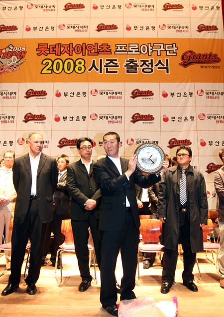 거인 군단의 용사들이 '가을에도 야구하자'는 롯데 팬들의 간절한 소망을 반드시 이뤄줄 것을 약속했다. 팬들도 로이스터호의 힘찬 출발을 위해 아낌 없는 박수를 보냈다. 롯데 자이언츠는 지난 27일 오후 7시 30분부터 부산 해운대 롯데백화점 센터시티점에서 출정식을 개최하고 올 시즌 명예 회복을 다짐했다. 이날 출정식은 ▲치어리더 공연 ▲감독 소개 ▲선수대표 인사말 ▲선수단 인터뷰 ▲서포터스 선물 증정 등으로 진행됐다. 올 시즌 거인 군단의 사령탑으로 부임한 제리 로이스터 감독은 "열정적인 팬들을 드디어 만나게 돼 반갑다. 야구장에서 아낌없는 응원을 기대한다"며 "메이저리그와 한국야구는 큰 차이가 없다. 우리 선수들도 ML 수준의 선수들이다"고 치켜 세웠다. 지난해 주장을 맡았던 '전국구 에이스' 손민한(33)은 "시범 경기에서 상당히 달라졌다. 자신감 속에서도 시즌을 맞이했다. 시즌이 끝나고 당당히 설 수 있도록 노력하겠다"고 강조했다. '복귀파' 송승준(28, 투수)은 "올 시즌 사이판과 가고시마에서 많은 땀을 흘렸다. 누구보다 많이 훈련했다. 가을에 웃을 수 있도록 최선을 다하겠다"고 4강 진출에 대한 강한 열망을 표현했다. 롯데 팬들은 로이스터 감독을 위한 특별한 선물을 마련했다. 특히 초등학교 1학년 김동훈 군이 로이스터 감독을 위해 만든 영문 카드를 로이스터 감독에게 전달해 잔잔한 감동을 선사했다. 롯데 선수단과 팬들은 부산 갈매기를 합창하며 이날 행사를 마무리했다. what@osen.co.kr 롯데 자이언츠 제공.