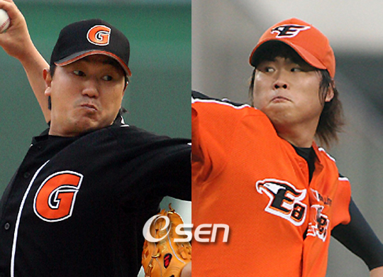 롯데 킬러냐, 노장의 복수냐. 29일 대전구장에서 한화와 롯데의 불꽃 튀는 에이스 맞대결이 펼쳐진다. 한화는 특급 좌완 류현진(21), 롯데는 우완 에이스 손민한(33)이 선발 등판한다. 개막전 선발카드 가운데 가장 격전을 예고하고 있다. 두 선수는 얼마 전 베이징올림픽 대만 최종예선에서 대표팀 선발투수로 한솥밥을 먹었다. 그러나 개막전부터 상대를 향해 화살을 겨누게 됐다. 류현진은 3년 연속 15승을 노리고 있다. 지난 2년 동안 에이스로 활약해서인지 이젠 노련함까지 풍기고 있다. 올해도 마운드를 이끌어야 되는 막중한 임무를 부여받고 있다. 첫 번째 길목에서 기분좋은 롯데를 만나게 됐다. 류현진은 롯데 킬러이다. 지난해 롯데를 상대로 4전 전승을 거두었다. 방어율도 1.36으로 짠돌이 피칭을 했다. 루키였던 2006시즌에도 3승(무패)을 올렸다. 데뷔와 함께 롯데를 상대로 7승(방어율 1.96)을 거뒀고 단 한 차례로 패하지 않았다. 반대로 롯데로서는 반드시 류현진을 잡아야 되는 처지이다. 올해 첫 날부터 또다시 류현진에게 말리면 시즌 내내 류현진 공포증에 시달릴 가능성이 있다. 에이스 손민한으로 맞불을 놓은 이유이기도 하다. 다만 손민한은 한화를 상대로 그다지 재미를 보지 못했다. 통산 12승13패를 기록하고 있다. 지난해는 1경기에 등판 패전을 당했다. 방어율은 12.00에 이른다. 좁은 대전구장에서 한화의 다이너마이트 타선을 상대하는 불리함을 안고 싸운다. 그러나 어느 해보다도 각오도 남다르다. 개막전 승리와 함께 롯데의 한이 되고 있는 4강을 향해 힘찬 출발하겠다는 의지를 갖고 있다. 올해 목표는 2점 대 방어율 복귀와 15승. 에이스 손민한이 한화를 향해 정조준 하고 있다. sunny@osen.co.kr 손민한-류현진.