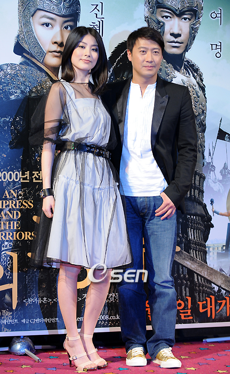 여명과 진혜림 주연으로 개봉 전부터 큰 화제를 낳고 있는 액션 판타지 멜로 영화 '연의 황후'의 공식 시사회가 25일 오후 서울 용산구 용산 CGV에서 열렸다. 이 자리를 빛내기 위해 참석한 진혜림과 여명은 각각 영화에서 황제의 운명을 타고난 공주 연비아(진혜림)와 그녀가 사랑하는 전설의 무사 난천(여명)역을 연기하였다. 기자회견을 마치고 두 배우가 포토타임을 갖고 있다. /민경훈 기자 rumi@osen.co.kr