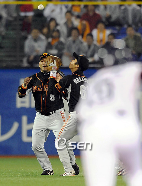 개막전부터 요미우리의 아킬레스건이 고스란히 드러났다. 요미우리는 지난 28일 야쿠르트와 개막전에서 약점으로 지적받은 수비 불안을 노출하며 완패했다. 앞으로도 수비 불안은 요미우리를 괴롭힐 것으로 보여 과제를 안게 됐다. 이날 요미우리는 여러 차례에 걸쳐 허술한 수비력을 보여주었다. 수비력에서 무너졌다 해도 과언이 아니었다. 게다가 새롭게 교체한 진구구장의 인조잔디, 강풍과 비가 내리는 악조건은 유난히 요미우리만 괴롭혔다. 1-0으로 앞선 2회말 수비. 1사 2,3루에서 이하라의 타구가 1루수 이승엽의 뒤쪽으로 뜬 공이 됐다. 볼을 따라가던 이승엽이 넘어졌다. 2루타로 돌변했고 실점을 허용했다. 따라가다 넘어진 이승엽도 안타까웠지만 2루수 사카모토의 적극적인 플레이도 아쉬웠다. 이후 2사 2,3루에서도 땅볼 타구를 잡은 사카모토가 신형 인조잔디 위에서 미끄러져 1타점짜리 내야안타가 됐다. 외야진에서는 좌익수 라미레스가 문제였다. 4회 1사 1루에서 가와지마의 유격수 뒤쪽 뜬 공을 놓고 좌익수 라미레스와 유격수로 이동한 사카모토가 콜플레이 미숙으로 잡지 못했다. 다행히 곧바로 2루로 던져 뒤늦게 스타트했던 1루주자를 잡았지만 이후 발빠른 가와지마에게 도루를 허용했고 추가 실점으로 이어졌다. 라미레스는 5회 2사 2루에서 이하라의 짧은 안타 때 빗나간 홈송구로 어이없는 실점을 했다. 라미레스의 송구능력을 알고 있는 야쿠르트는 적극적인 주루플레이로 사실상 쐐기 점수를 얻어냈다. 타구가 라미레스쪽으로 가면 1루주자가 3루까지 진출하는 등 라미레스의 불안한 수비력은 뚜렷했다. 요미우리는 수비불안과 함께 선발투수 다카하시 히사노리도 무너졌다. 지난 오프시즌에서 싹쓸이 보강으로 막강한 전력을 구축한 요미우리는 일찌감치 수비 불안이 약점으로 지적받았다. 공교롭게도 시즌 첫 날 약점의 실체를 느끼게 해주었고 결과는 치명적이었다. 개막전부터 하라 감독의 머리가 복잡할 것만 같다. sunny@osen.co.kr 지난 28일 경기 4회 가와지마의 플라이볼을 좌익수 라미레스와 유격수 사카모토가 모두 놓치고 있는 모습.