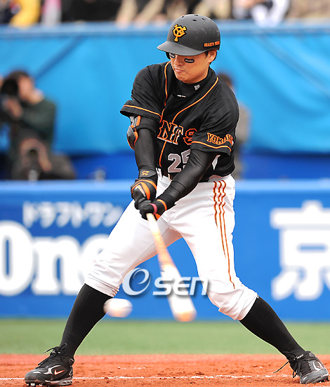 이승엽(32. 요미우리 자이언츠)이 올 시즌 7타석만에 깨끗한 안타를 날렸다 이승엽은 29일 도쿄 진구구장에서 열린 야쿠르트 스왈로즈와의 원정 2차전에 요미우리 4번 타자 겸 1루수로 선발 출장, 요미우리가 3-2로 추격당한 5회 무사 1루에서 우전안타를 터뜨렸다. 전날 개막전에서 임창용에게 삼진을 당하는 등 4타수 무안타로 침묵했던 이승엽은 야쿠르트 두 번째 주자로 나선 우완 노장 하기와라 쥰(35)을 맞아 볼 카운트 2-0에서 3구째 변화구를 받아쳐 주자 1, 2루의 기회를 만드는데 성공했다. 이승엽은 1회 1사 1, 2루의 첫 타석에서는 야쿠르트 선발 좌완 무라나카 교헤이(21)를 상대로 유격수 땅볼로 물러났다. 요미우리는 이승엽의 진루타로 만든 2, 3루에서 5번 라미레스가 볼넷을 얻어 이룬 만루 기회에서 6번 아베 신노스케의 선제 2타점짜리 우전 적시타, 후속 다니 요시토모의 중전 적시타로 3점을 뽑았다. 한편 이승엽은 2회 수비에서 야쿠르트 5번타자 가이엘의 우익선상 타구에 왼손바닥을 얻어맞는 아찔한 상황을 연출했다. 타구가 워낙 강한 탓에 이승엽이 미처 미트를 갖다대지 못하고 엉겁결에 왼손을 내밀어 막아내긴 했으나 안타가 됐다. 이승엽은 선두타자로 들어선 3회 두 번째 타석에서는 잘 맞은 타구가 중견수 정면으로 날아가 잡히고 말았다. chuam@osen.co.kr 사진=도쿄 진구구장, 손용호 기자spjj@osen.co.kr