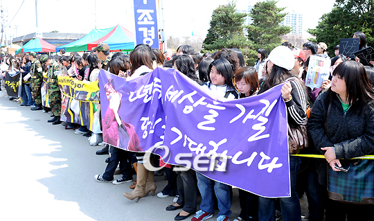 ‘늘 이 자리를 지킬게요.’ ‘당신을 잊지 않겠습니다.’ 1일 오후 가수 강타(29)가 입대하는 경기도 의정부 306 보충소 정문 앞은 아시아 각국에서 모여든 그의 팬들로 인산인해를 이뤘다. 이들은 강타의 입소가 오후 1시 30분으로 예정된 사실을 알고도 아침 이른 시간부터 줄을 맞춰 서서 강타를 기다렸다. 강타의 중국 대표 팬클럽 ‘C.H.C(Chil Hyun Club)’ 회원인 마양(馬阳 ,23)씨는 “중국 팬 100여명은 강타의 입대 전 콘서트 일정에 맞춰 한국을 방문했다. 팬 클럽 모두 콘서트를 관람했고, 오늘 강타의 입대를 직접 보기 위해 이렇게 왔다. 몸 건강하게 잘 다녀왔으면 좋겠다” 고 전했다. 또 강타를 너무 좋아해서 한국어를 배우기 시작해 현재 한국의 한 대학 부설 어학당에서 한국어를 계속 공부하고 있다는 황민(黃敏,23) 씨는 “HOT 시절부터 강타를 좋아했고, 벌써 10년이 지났다. 중국에서 신문 방송학을 전공했는데, 얼른 유창한 한국어 실력을 갖춰 가까운 미래에 강타를 직접 인터뷰 하는 것이 소망이다”고 밝혔다. 강타의 입소식을 보기 위해 의정부 보충소를 찾은 한국 중국 일본 홍콩 대만 팬들은 강타가 집합 장소로 갈 때까지 자리를 지키며 눈물을 참지 못하는 모습을 보였다. 강타는 자신의 입대를 배웅해 주러 나온 팬들에게 “먼 길 오시느라 너무 고생하셨다. 관심 가져주셔서 너무 감사하고, 건강히 다녀오겠다”고 말했다. 한편, 강타는 5주간의 신병 교육 훈련을 마친 뒤 자대를 배치 받을 예정이다. ricky337@osen.co.kr