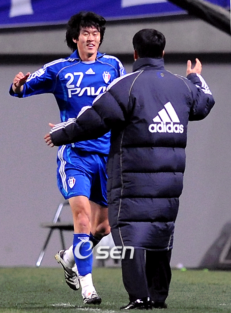 3경기 연속골을 기록한 서동현이 수원의 승리를 이끌었다. 2일 오후 8시 서울 상암월드컵경기장에서 열린 2008 삼성 하우젠컵 2라운드에서 수원 삼성이 서동현의 선제골과 조용태의 연속골에 힘입어 FC 서울을 2-0으로 제압했다. 이날 승리로 수원은 컵대회 2연승을 거뒀고, 서울은 무패행진을 마감했다. 올 시즌 K리그 최고의 라이벌 중 하나인 서울과 수원이 만났다. 평일 컵대회 경기였음에도 불구하고 지난해 서울이 수원을 꺾으며 상승세를 시작했고, 수원에 연패하며 고전했다는 것을 알고 있기에 이목이 집중된 경기였다. 여기에 영화 '우생순'의 주인공 임오경(37, 서울시청여자핸드볼팀) 감독이 시축을 맡아 관중의 열기는 뜨거웠다. 경기의 중요성을 증명하듯 수원은 베스트 일레븐으로 나섰다. 에두와 신영록을 전방에 배치하고, 이관우와 양상민이 측면 공격에 가세했다. 여기에 박현범과 조원희가 탄탄한 중원 구축에 나섰다. 또 수비에서는 마토, 곽희주, 이정수, 송종국이 포백으로 나섰다. 이에 맞서는 FC 서울도 가용 인원을 총동원했다. 정조국과 이승렬 그리고 박주영의 삼각 편대를 전방에 배치하고, 고명진과 기성용, 김한윤이 미드필드진에서 맞섰다. 수비에서도 울산 현대에서 영입한 이종민을 비롯해 윤홍창, 김진규, 김치곤을 내세웠다. 라이벌끼리 대결인 만큼 팽팽한 접전은 전반 내내 이어졌다. 서울은 중원 장악에 힘쓰며 전진 패스로 공격을 풀어갔고, 수원은 좌우 측면에서 이어지는 크로스로 높이의 축구를 과시했다. 비록 골은 터지지 않았지만, 전반 양 팀 합쳐 16개의 슈팅이 터질 정도로 끊임없는 공격의 연속이었다. 이는 빠른 경기 진행을 요구하는 주심의 성향과 몸싸움을 피하지 않는 양 팀의 각오가 어우러졌기 때문이었다. 그리고 김호준 골키퍼의 선방에 막힌 마토의 헤딩슛이나 크로스바에 맞은 김한윤의 헤딩슛과 박주영의 터닝슛은 골에 대한 기대감을 부풀리기에 충분했다. 그리고 그 기대감을 풀어준 팀은 수원이었다. 후반 시작과 함께 안효연을 투입하며 거센 공세를 시작한 수원은 서울의 빈 틈을 노려 선제골을 만들어냈다. 후반 32분 역습 상황에서 송종국이 길게 전방으로 연결한 공을 에두가 경합 끝에 역시 교체 투입된 서동현에게 연결해 만든 작품이었다. 예상치 못한 일격을 허용한 서울이 이상협을 투입하며 동점골 사냥에 나섰지만, 수원은 수비를 강화하며 골문을 잠그는 것으로 대응했다. 오히려 후반 48분 역습에 나선 수원은 조용태가 쐐기골을 성공시키며 라이벌 서울을 제압했다. 한편 양 팀은 경기 종료 직전 지나친 라이벌 의식으로 송종국과 이상협이 퇴장 당하는 아쉬운 모습을 연출했다. stylelomo@osen.co.kr 후반 선제골을 성공시킨 서동현이 차범근 감독에게 축하를 받고 있다. /상암=황세준 기자 storkjoon@osen.co.kr